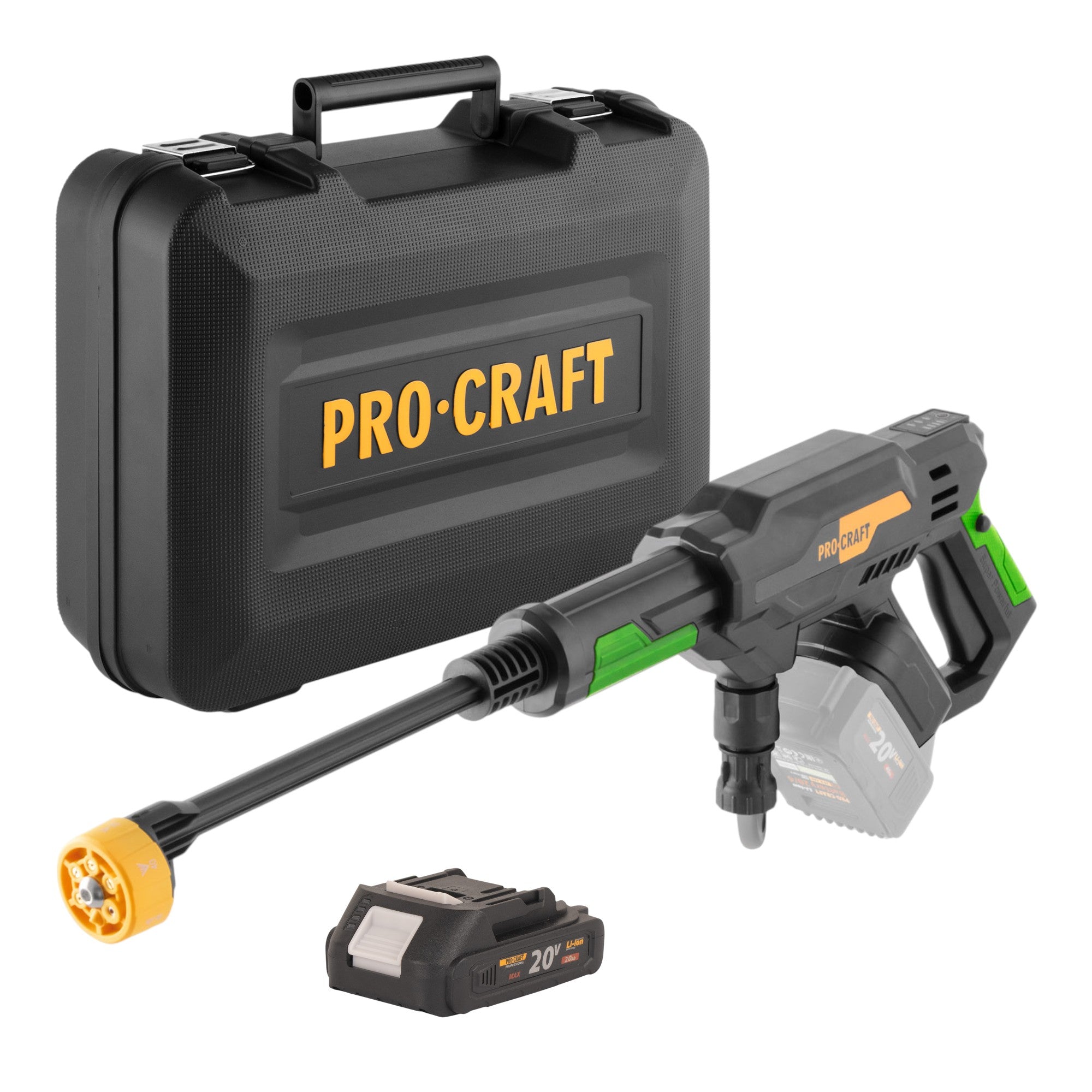 Procraft CW20bb Akku Hochdruckreiniger 20 V 30 bar 180 l/h Brushless + 1x Akku 2,0 Ah + Koffer - ohne Ladegerät