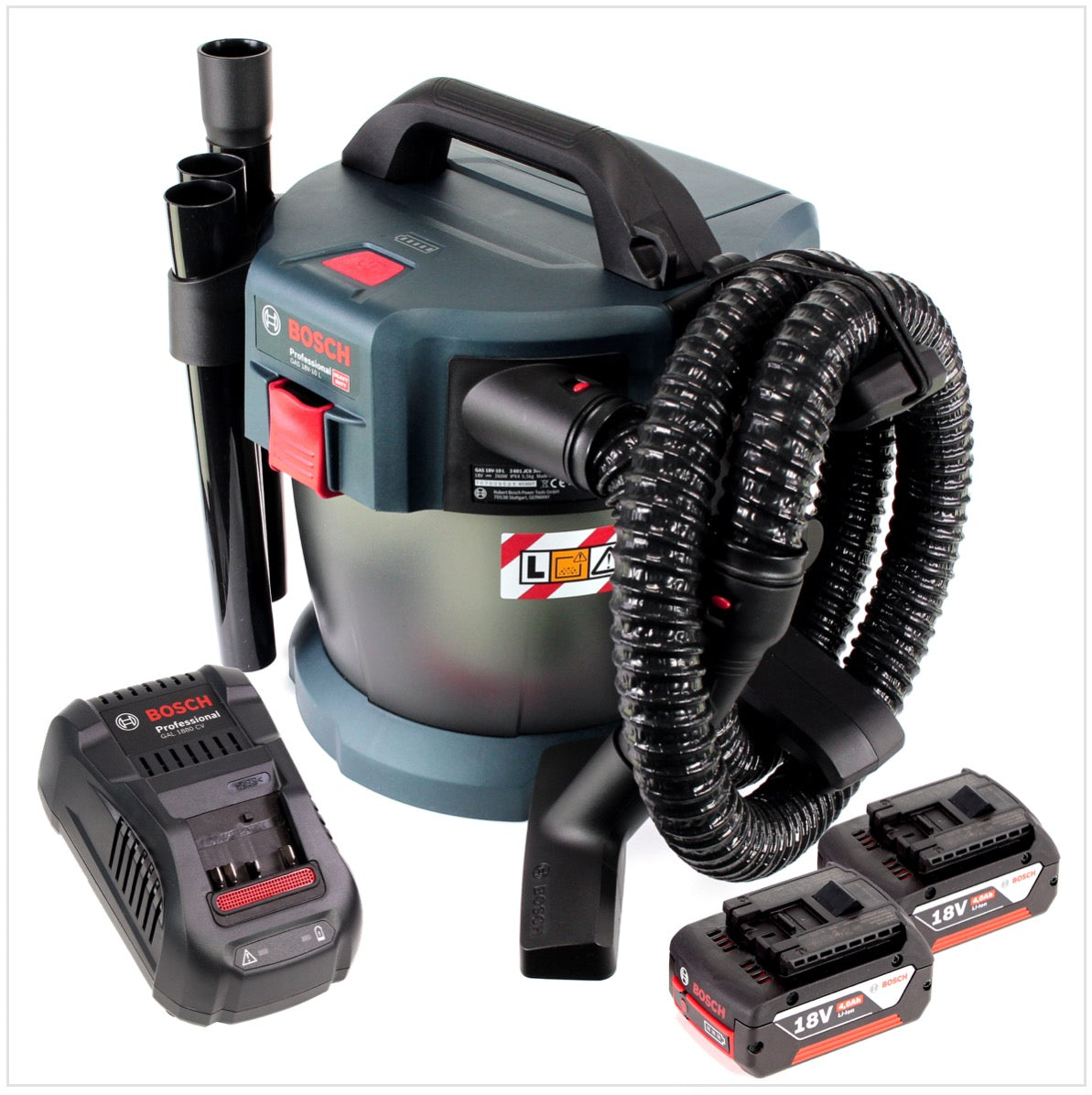 Bosch GAS 18V-10 L Professional Li-Ion Akku Staubsauger Nass- und Trockensauger + 2x GBA 4,0 Ah Akku + GAL 1880 CV Ladegerät