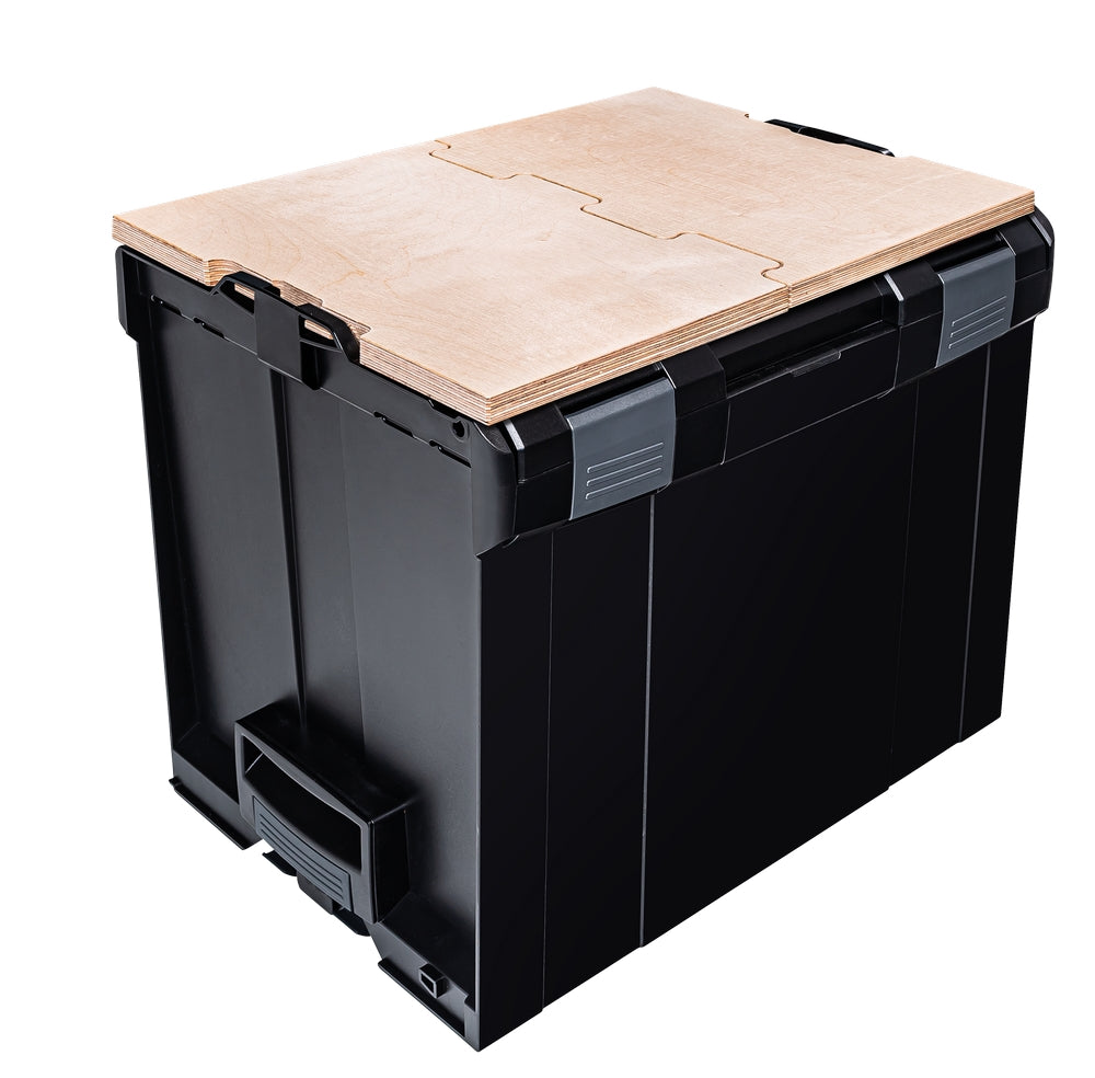 Die Arbeitsplatte Deckel zweiteilig LB bietet Ihnen eine stabile und praktische Lösung, um Ihre L-BOXXen, LS-BOXXen und i-BOXX Racks ohne Werkzeug sicher zu befestigen. Mit einer Stärke von 15 mm ist diese Multiplex-Arbeitsplatte eine zuverlässige Unterlage für alle Arbeiten, die eine kompakte Auflagefläche erfordern. Durch die Möglichkeit, die Arbeitsplatte mühelos in zwei Teile zu teilen, wird der Transport in der BOXX erleichtert und ermöglicht eine platzsparende Verstauung.