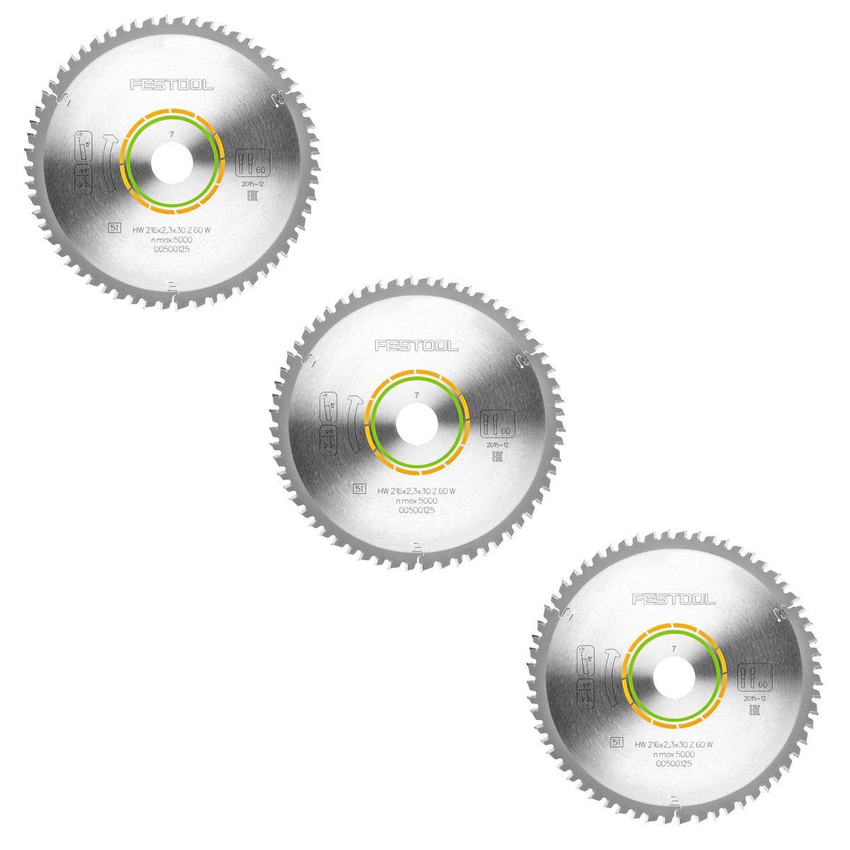 Festool 3x Feinzahn Kreissägeblatt HW 216 x 2,3 x 30 mm W60 216 mm 60 Zähne ( 3x 500125 )