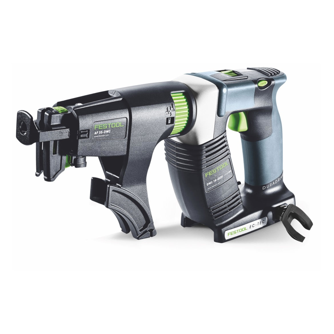 Der Festool DWC 18-4500 Akku Bauschrauber mit Magazinvorsatz eignet sich optimal für Schraubarbeiten im Bereich Trockenbau. Durch die sehr hohe Drehzahl, sind Serienverschraubungen in kürzester Zeit möglich, egal ob Metall- oder Holzunterkonstruktion. Betrieben wird der Akku Bauschrauber mit einem bürstenlosen EC-TEC Motor, welcher sich durch eine lange Lebensdauer und einen sehr hohen Wirkungsgrad auszeichnet. Die elektronische Abschaltung ist nicht nur besonders präzise, was ein exaktes Einstellen der Einschraubtiefe ermöglicht, sondern auch verschleißfrei und somit sehr langlebig konzipiert. Das Magazin des DWC 18-4500 kann bei Bedarf in wenigen Sekunden ohne den Gebrauch eines Werkzeuges abmontiert werden, wodurch der Akku Bauschrauber in wenigen Sekunden bereit für sämtliche Aufgaben ist.