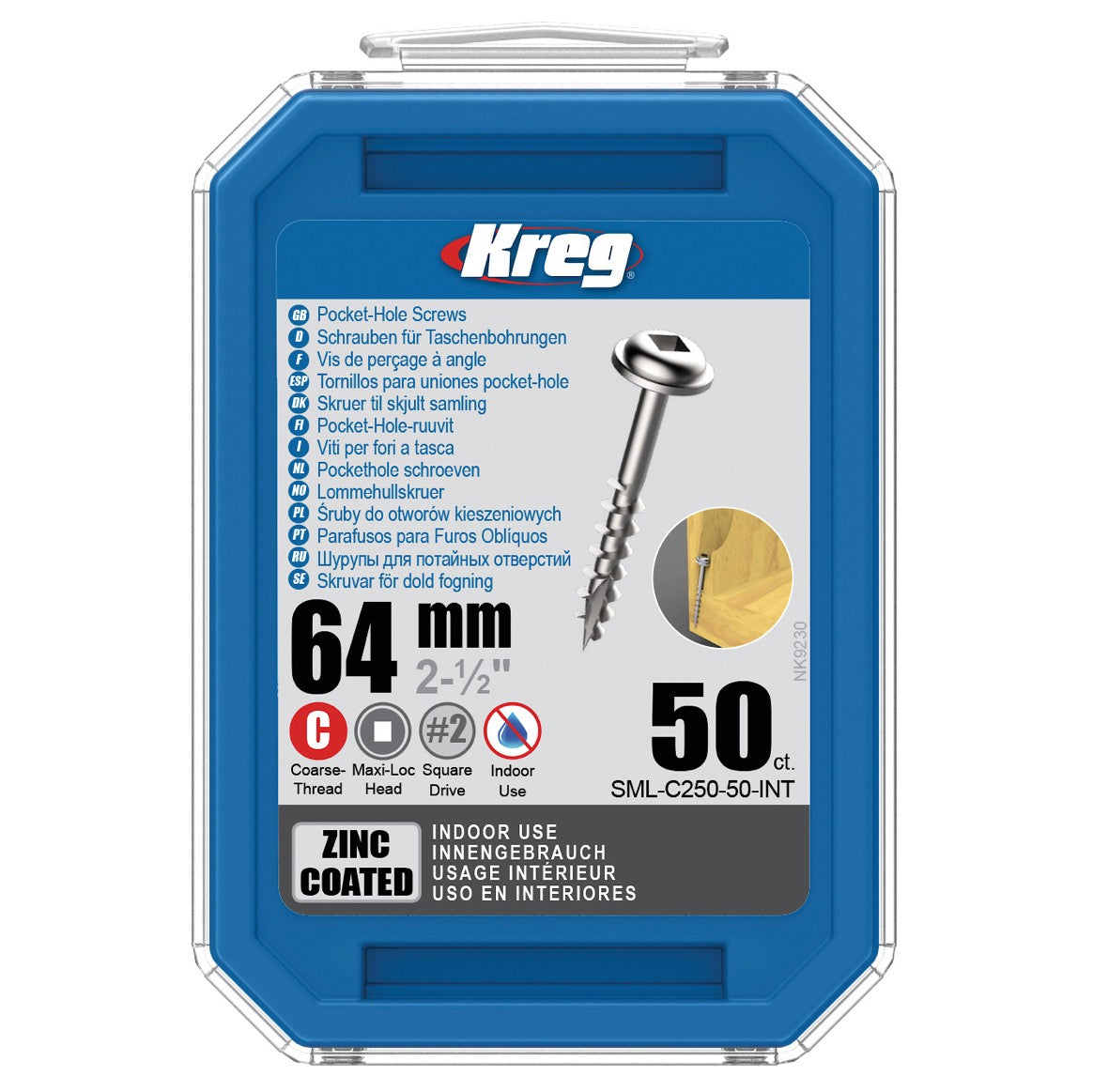 KREG Pocket-Hole Linsenkopfschraube 64 mm 50 Stk ( SML-C250-50 ) Vierkantantrieb Teilgewinde Grobgewinde selbstschneidend verzinkt