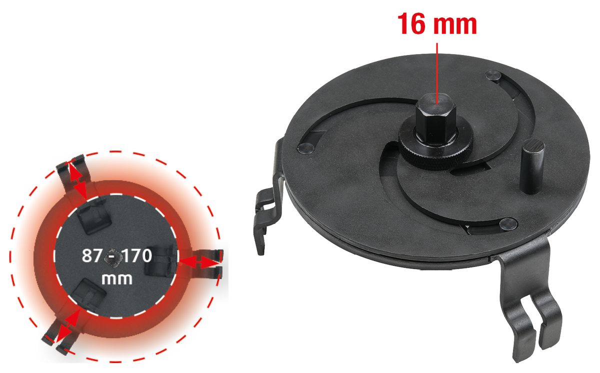 • ideal zum Lösen und Festziehen des Kunststoff-Verschlussringes vom Tankgeber am Kraftstofftank