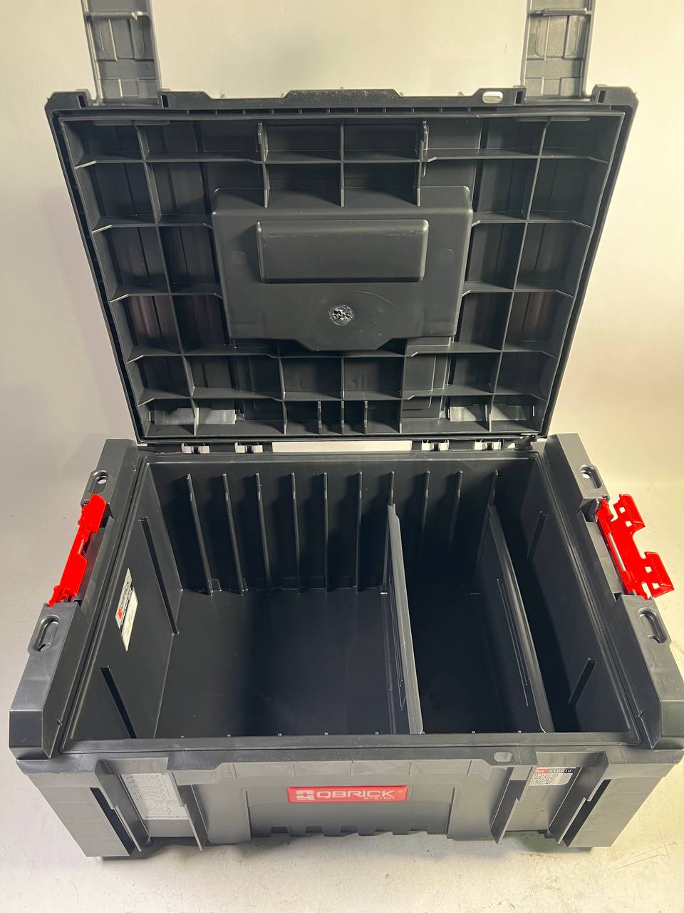 Die Qbrick System PRO Toolbox ist eine geräumige, modulare Werkzeugbox, die bereits standardmäßig eine breite Palette an Zubehör bietet: eine im Deckel integrierte flexible Dichtung, die eine hohe Beständigkeit gegen das Eindringen von Staub und Wasser gewährleistet, 3 verstellbare Fächer, eine geräumige Ablage sowie seitliche Verbindungs- und Befestigungselemente aus super strapazierfähigem Polyamid vorne. Spezielle Führungen in der QS PRO Toolbox ermöglichen es Ihnen, die QS TWO Multi Organizer zu platzieren, die der Aufbewahrung von kleinem Werkstattzubehör dienen.