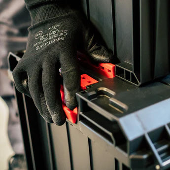 Der Toolbrothers RHINO L Drawer 1 ECO Basic ist ein kompakter, modularer Werkzeugkasten mit einer robusten, ausziehbaren Schublade auf langlebigen Metallschienen. Ein praktischer Druckknopf sorgt für schnellen und einfachen Zugriff auf den Inhalt. Die Schublade ist mit einer Trennwand ausgestattet, die flexibel an drei verschiedenen Stellen eingesetzt werden kann, um eine optimale Organisation zu gewährleisten. Der Korpus besteht aus hochwertigem ABS-Kunststoff, während die seitlichen Verbindungsstücke aus strapazierfähigem Polyamid eine einfache Verbindung mit anderen Modulen der RHINO L-Linien ermöglichen. Ein ergonomischer Griff erleichtert das Tragen, und eine Beschriftungsfläche, geschützt durch eine stabile Polycarbonatabdeckung, ermöglicht die klare Kennzeichnung des Inhalts. Das automatische Verriegelungssystem verhindert ein ungewolltes Herausziehen der Schublade und bietet zusätzlichen Komfort und Sicherheit. Die ECO Edition ist aus recyceltem Kunststoff hergestellt und zeichnet sich ihre hohe Widerstandsfähigkeit aus. Die ECO Version besitzt eine außergewöhnliche Beständigkeit gegen mechanische Beschädigungen und ist gleichzeitig nachhaltig. Mit einem Fassungsvermögen von 12 Litern und Schutzklasse IP54 ist dieser Werkzeugkasten ideal für den Einsatz in anspruchsvollen Umgebungen geeignet.