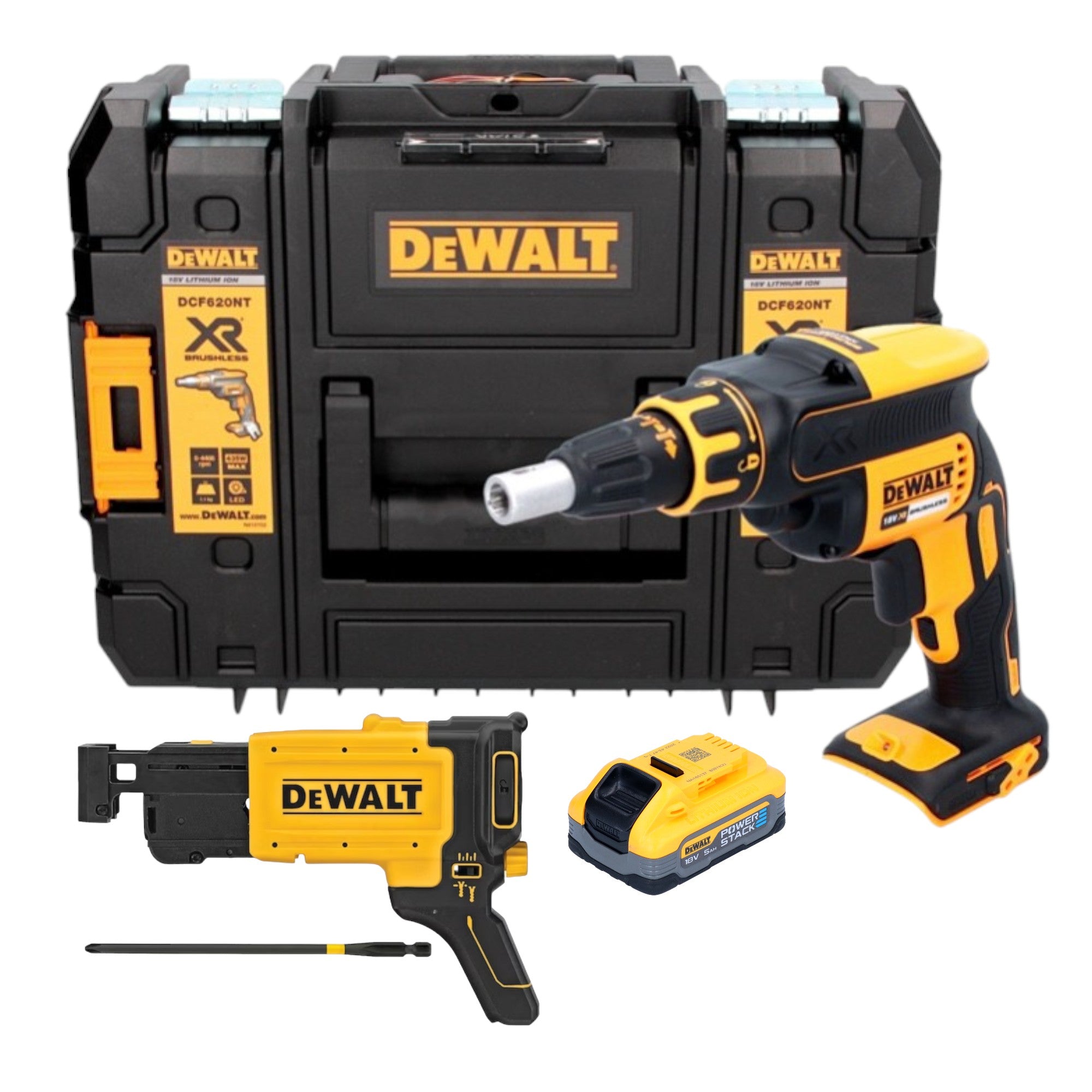 DeWalt DCF 620 NT cordless drywall screwdriver 18 V 30 Nm brushless + 1x Powerstack battery 5.0 Ah + TSTAK - without charger