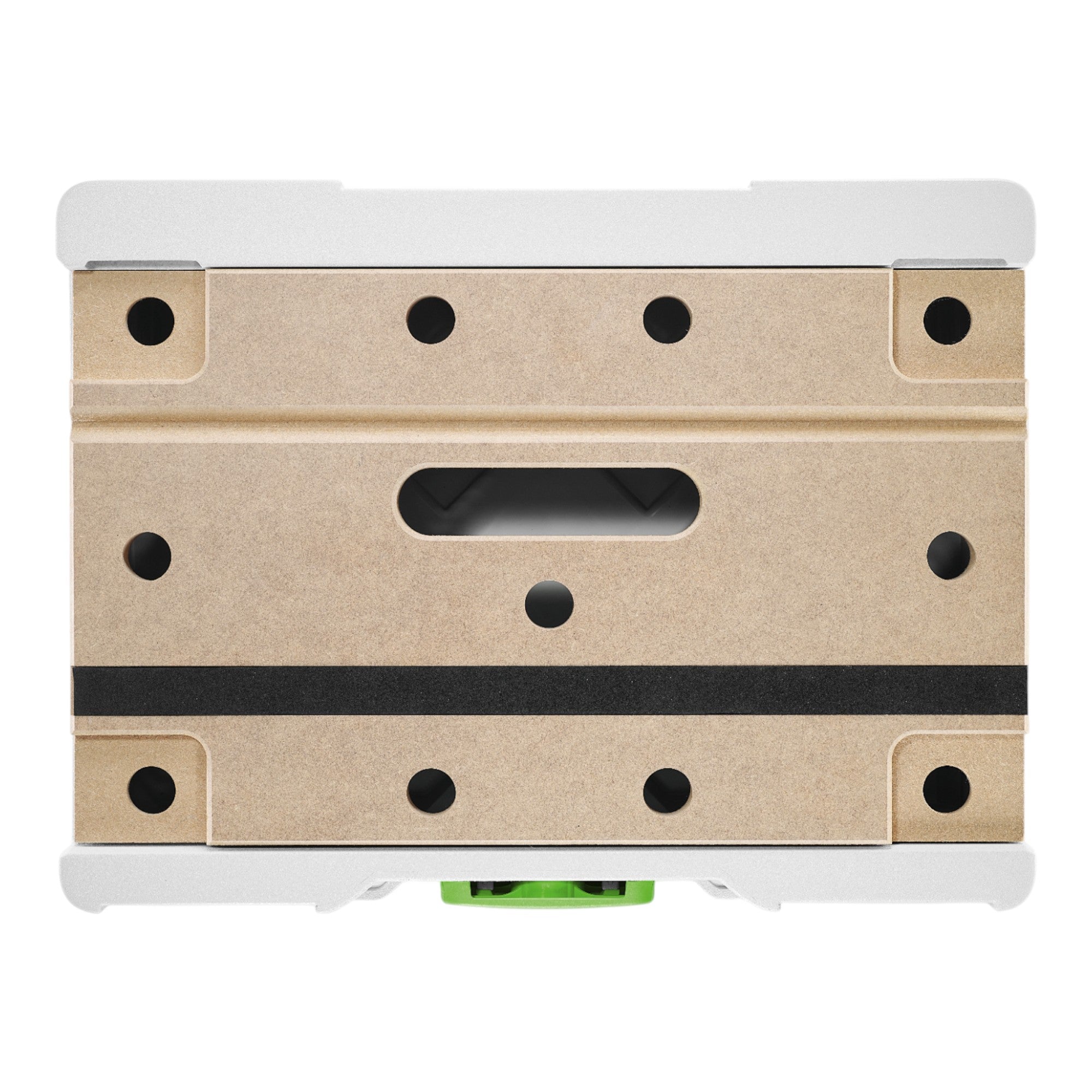 The Festool SYS3-MFT M 112 is much more than just a case - it is a fully-fledged, mobile workbench in a practical Systainer format. As a mobile workstation, it is perfect for travelling and makes you flexible on any construction site or during assembly work. Whether you're sawing, drilling or sanding - the robust MDF perforated plate in the lid allows you to work with ease. Screw clamps and clamps can be fixed directly in it so that you can securely fasten workpieces of various shapes, even round rods and pipes up to a diameter of 50 mm. The integrated foam rubber base provides additional stability and prevents slipping during processing - even if you don't use the clamps. Once you've finished your work, simply stow all accessories inside the Systainer to keep everything tidy and ready to hand. The SYS3-MFT is versatile and compatible with all clamps and clamps of the Festool MFT multifunction table. Thanks to its integration into the entire Festool Systainer system, it is easy to couple and transport. It also impresses with practical details: You can use a second Systainer of the same height (SYS3 M 112 or SYS 1 T-LOC) for processing long workpieces. The height of the SYS3-MFT also corresponds exactly to the working height of the Festool KAPEX saw tables (KS 120 without feet or KS/KSC 60 with feet), making it the ideal support when sawing long workpieces. This makes it a reliable companion for professionals who value mobility, organisation and efficiency.