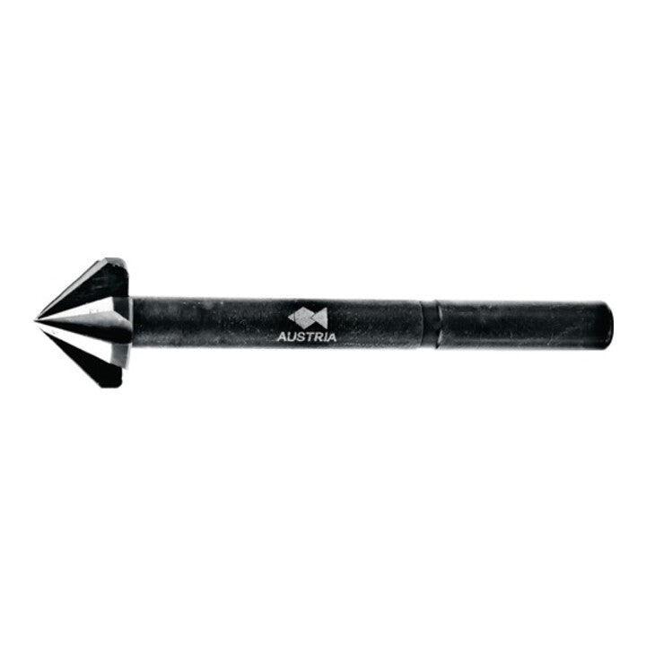made of alloyed tool steel - 7-edged 90° countersink with unequal pitch - CNC precision ground - with cylindrical shank Ø 8 mm - chatter-free countersinking - Applications: For countersinking hardwood, coated or veneered boards, softwood, plastics, non-ferrous metals