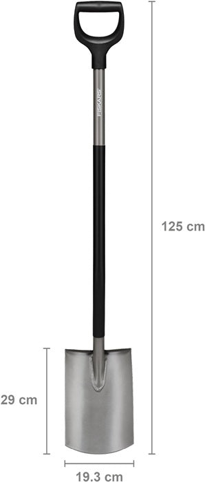 Particularly suitable for digging and turf cutting - ergonomic shape - handle length 1250 mm - very stable thanks to high-quality boron steel - sharpened blade edge - ergonomic shaft angle with SoftGrip™ on the shaft - tread for easy penetration into the ground