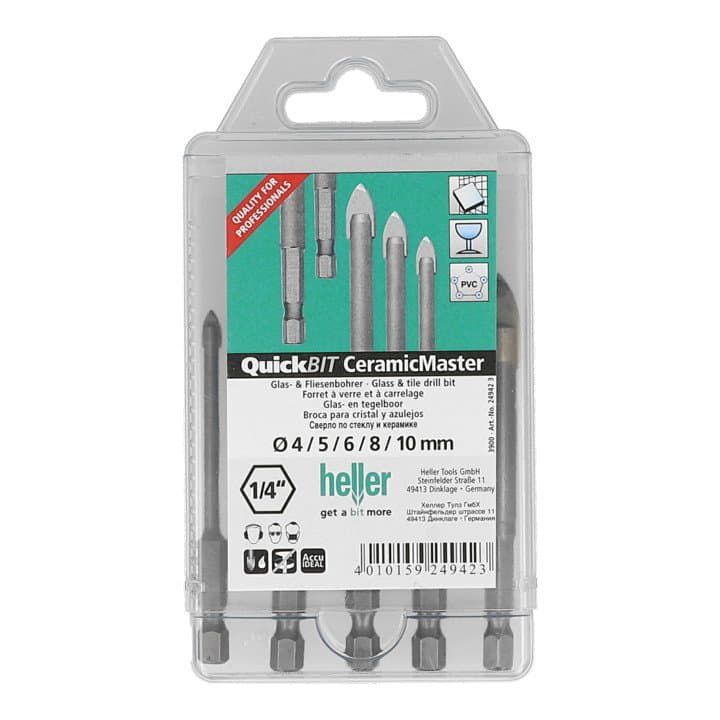 - QuickBit® Ceramik Master 5-piece drill bit set Ø 4, 5, 6, 8, 10 mm