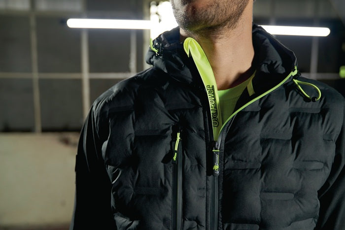96% polyester / 4% elastane + TPU membrane, approx. 320 g/m² - extremely versatile, water-repellent, breathable and windproof hybrid jacket - waterproof zip - fixed and adjustable hood - elasticated cuffs - inner lining consisting of nylon and microfleece - equipped with two large front pockets with fluo zip and a pocket on the chest, which is closed with a waterproof zip - two large inner pockets