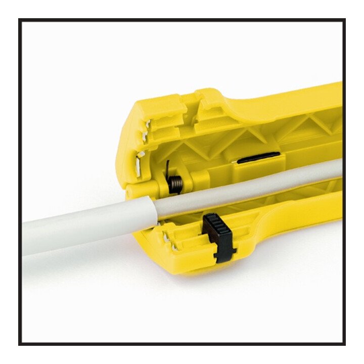 for stripping NYM cables - for right and left-handers - stripping of the heavy outer insulation and stripping option for the stranded wire thanks to interchangeable stop - NYM cables 3 x 1.5 mm² to 5 x 2.5 mm² = damp-proof cable - titanium nitride-coated blades, therefore higher cutting speed, less wear, longer service life - also for rubber cables - housing made of high-quality, wear-resistant polyamide