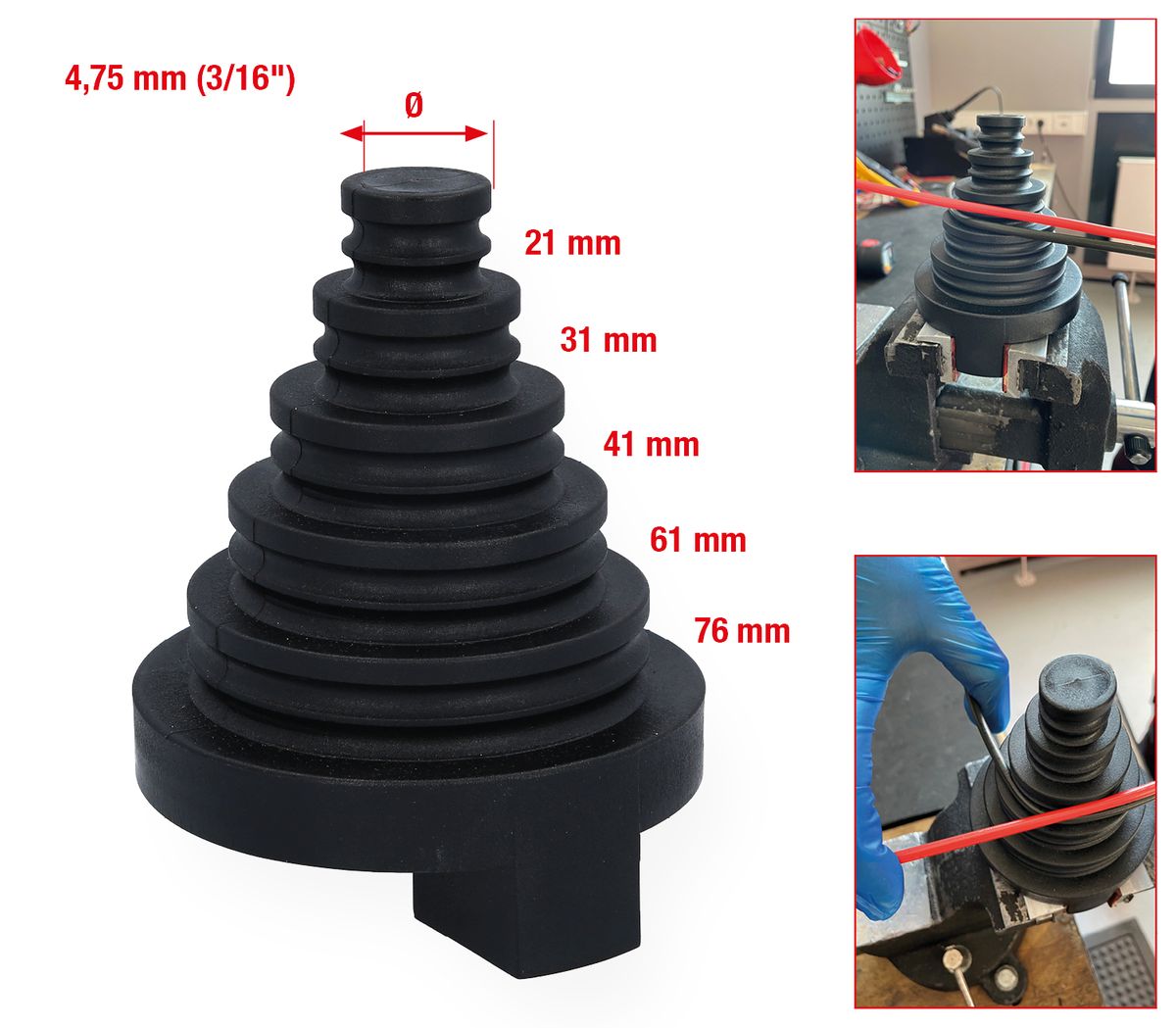• fünf verschiedene Biegeradien: 21, 31, 46, 61 und 76 mm