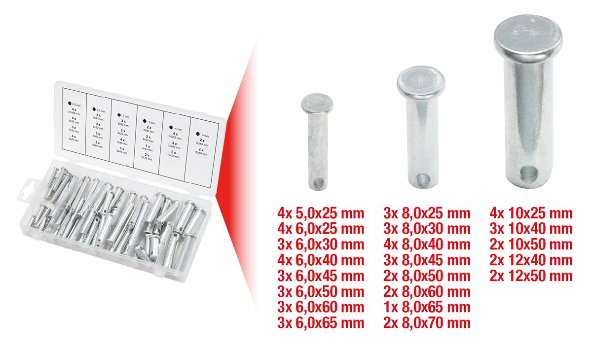KS TOOLS Sortiment Sicherungsbolzen, Ø 5-12mm, 21 Größen, 60-tlg ( 970.0210 )