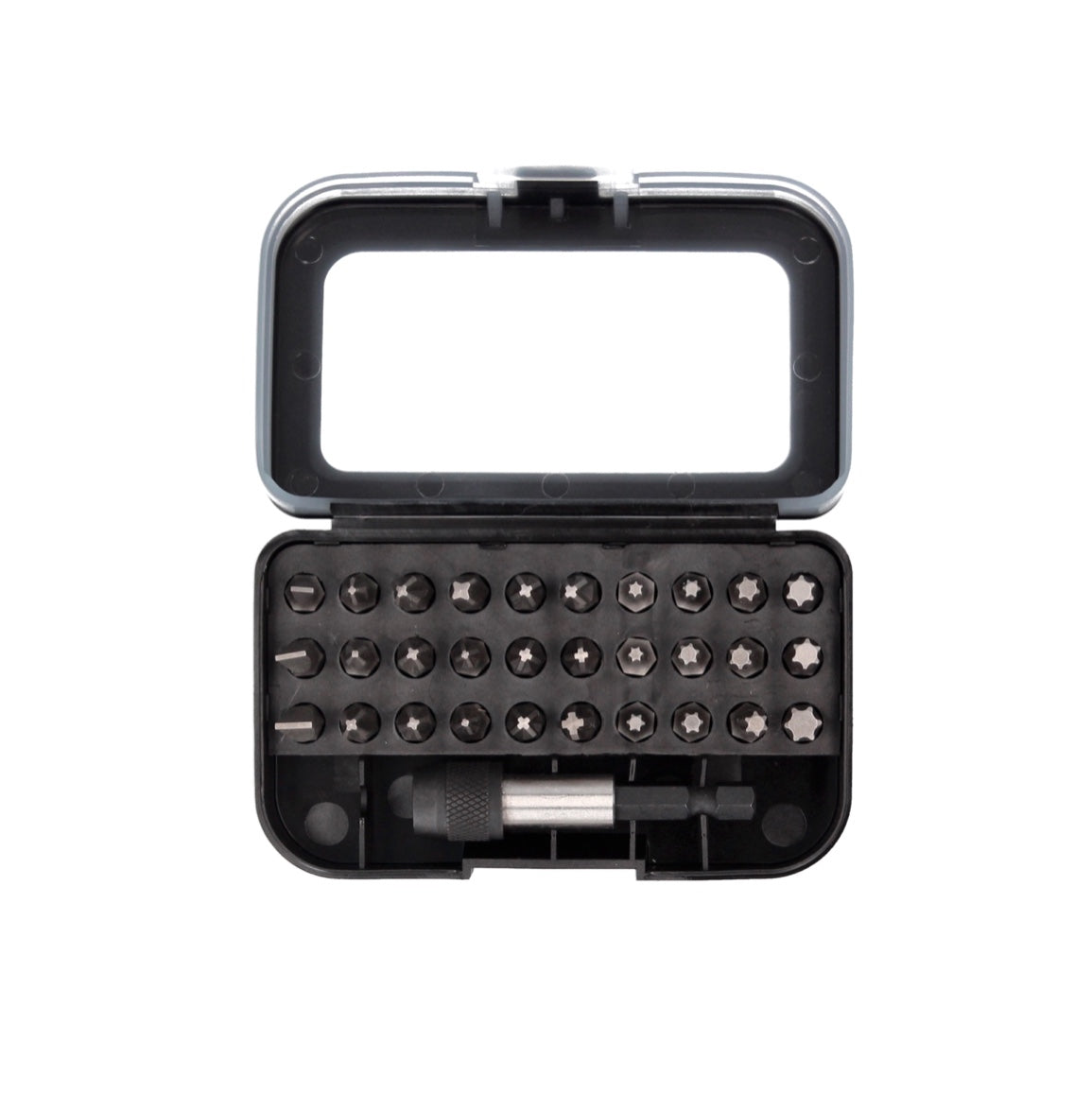- 12x T Bit 25 mm ( 2x T10 / 2x T15 / 2x T20 / 3x T25 / 2x T30 / 1x T40 )