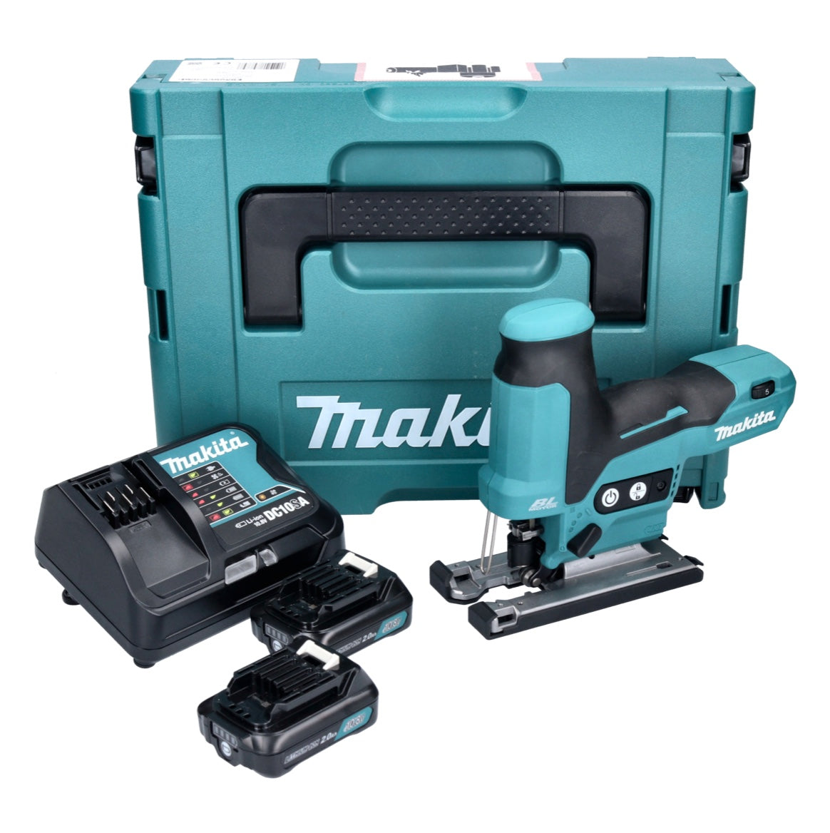 Makita JV 102 DSAJ Akku Pendelhubstichsäge 12 V max. Brushless + 2x Akku 2,0 Ah + Ladegerät + Makpac