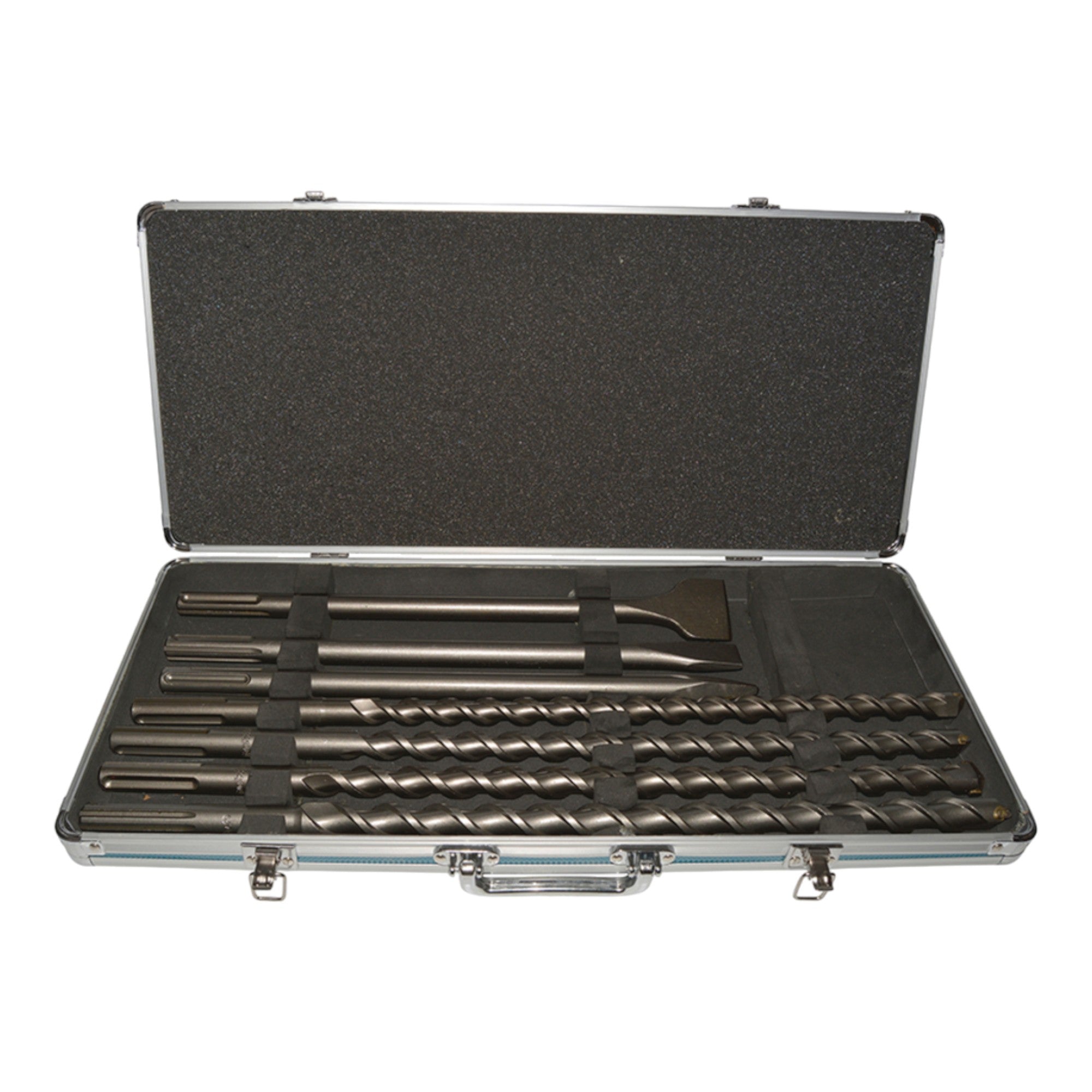 The SDS-MAX drill and chisel set from Makita is the perfect solution for all drilling and chiselling work in concrete. The set consists of a total of four drill bits in the sizes 18x540 mm, 20x540 mm, 22x540 mm and 25x540 mm. In addition, a pointed chisel with a length of 400 mm, a flat chisel in the size 25x400 mm and a wide chisel in 50x400 mm are included. All tools are made of high-quality tungsten carbide and therefore guarantee a long service life and precise results. The drill bits and chisels are specially designed for the SDS-MAX holder and therefore fit perfectly on your SDS-MAX drill. The holder ensures a secure and stable connection between the tool and the machine, enabling efficient and powerful work. Thanks to the tungsten carbide tip, the drill bits and chisels are particularly robust and can perform their work effortlessly even in hard concrete. They are characterised by their high wear resistance and therefore guarantee a long service life. The set is supplied in a robust and padded Makita aluminium case, which optimally protects your tools from damage and impact.