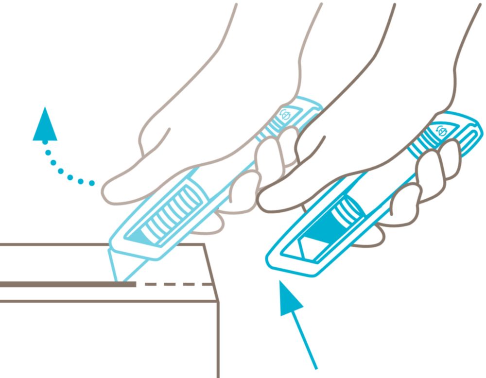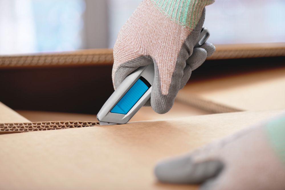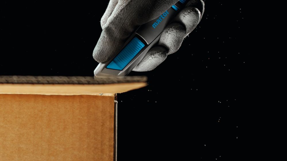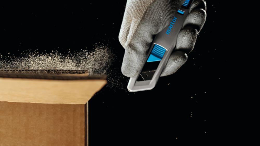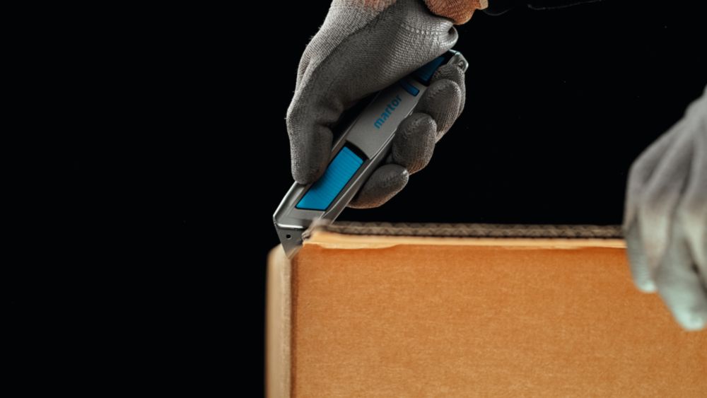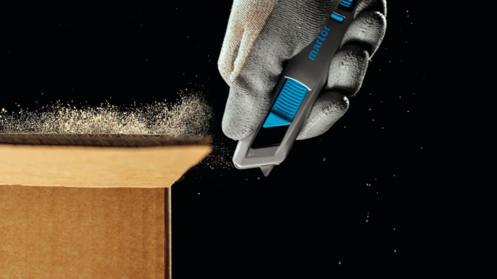 extremely ergonomic aluminium handle for significantly better handling and more comfortable working - further development of the MARTOR classic SECUNORM PROFI - flexible slider can be operated from both sides - large cutting depth for up to 3-ply cardboard boxes, film, strapping etc. - Easy blade change with blade change button - For right and left-handers