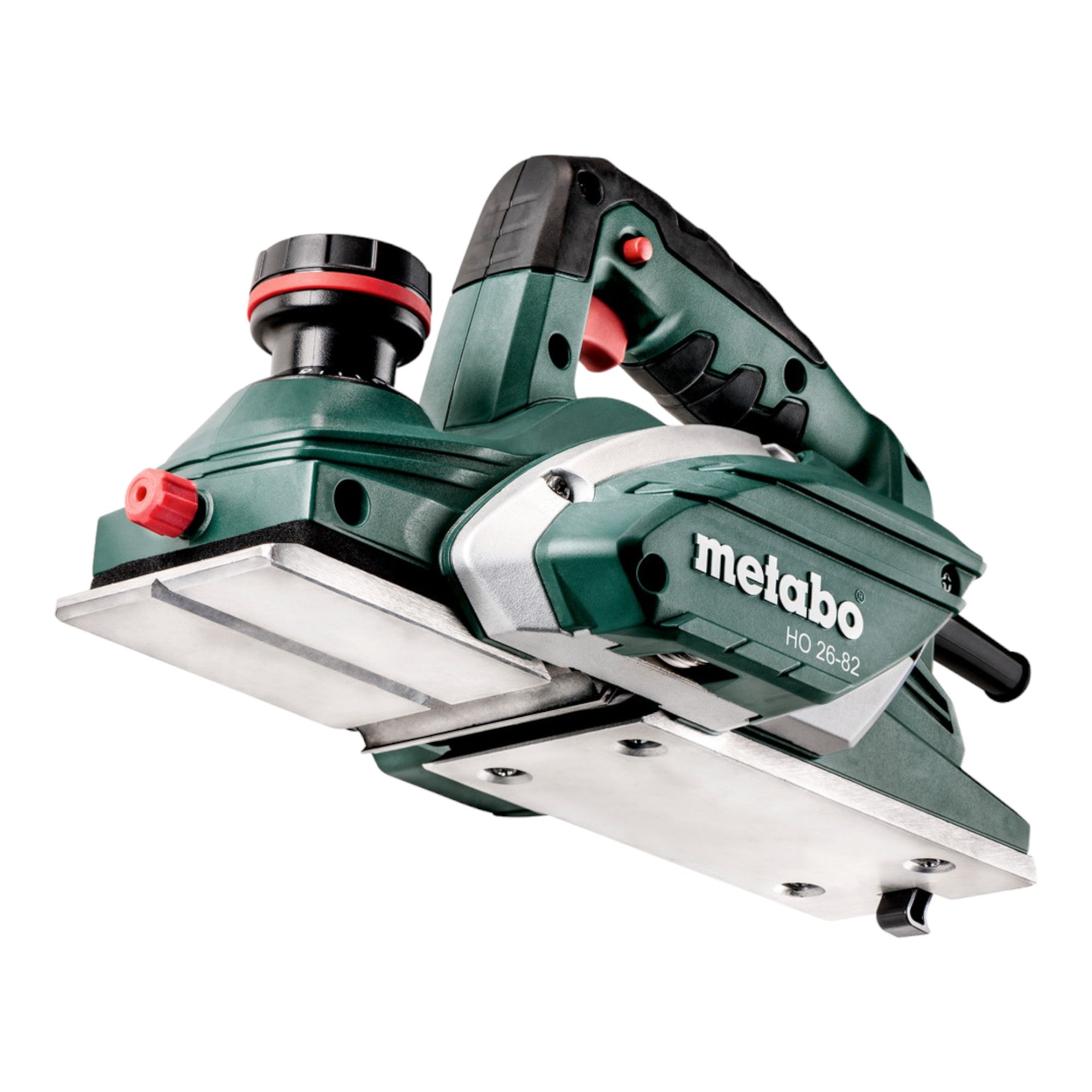 The Metabo HO 26-82 planer is a lightweight and handy universal planer that is ideal for planing, rebating and chamfering. The planing depth and rabbeting depth can be infinitely adjusted to achieve precise results. The planer sole made of face-milled die-cast aluminium has a V-groove that makes chamfering easy. A rip fence ensures precise guidance of the planer, while the handle area is equipped with a non-slip soft grip surface. An all-purpose vacuum cleaner can be connected to keep the working environment clean. The angled chip ejection adapter ensures controlled removal of the shavings. An easy-to-empty textile dust bag makes it easy to work without a vacuum cleaner. The planer also has a bracket on the soleplate, which serves as a support surface and protects the workpiece. The simple blade change of the robust carbide reversible planer blades rounds off the versatile functions of the Metabo HO 26-82 planer.