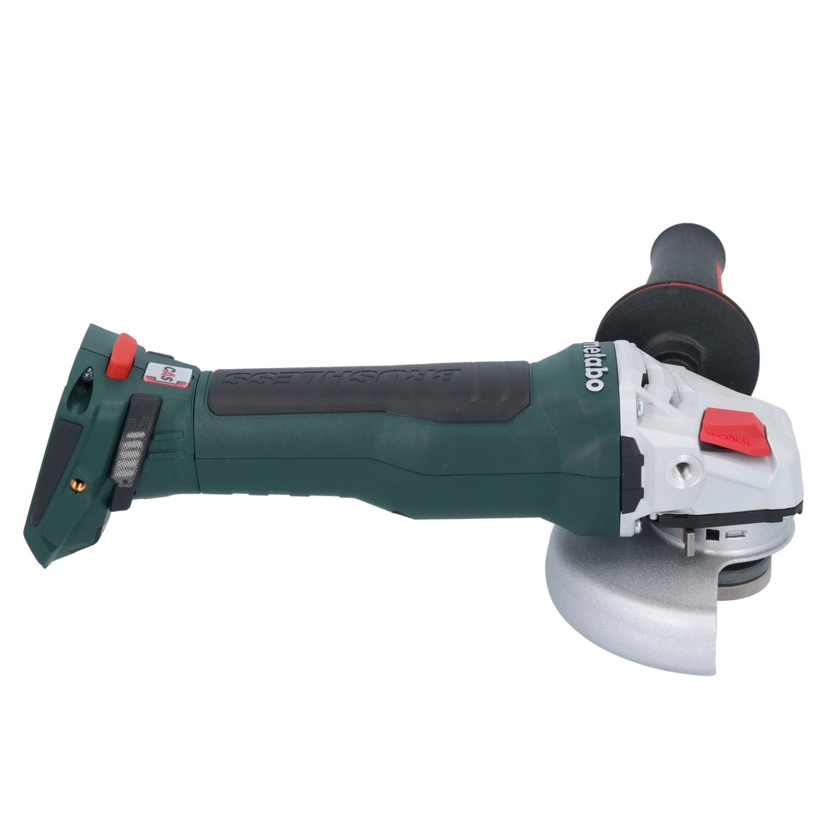 The new generation brushless cordless angle grinder from Metabo delivers an output equivalent to that of an 1100 watt mains unit - with 40% more power. Its service-free brushless motor is not only extremely efficient, but also offers ultimate manoeuvrability thanks to its compact size. A fast braking system ends the work process within 1 second of switching off and the M-Quick system enables tool-free disc changes at the touch of a button. The tool-free adjustable guard can be fixed in place without twisting. The battery pack can be rotated in 90° increments and ensures optimum ergonomics in any working position. Another highlight is the Metabo S-automatic mechanical safety clutch, which minimises kick-back when the disc jams to the lowest level on the market - for maximum user protection. The brushless cordless angle grinder also features electronic overload protection, soft start and restart protection. A removable dust filter protects the motor from coarse particles. With the brushless cordless angle grinder from Metabo, you are ideally equipped for any challenge and can combine it with all 18V battery packs and chargers from the CAS brands. With the new cordless angle grinder, you get a powerful and efficient tool that will save you a lot of time and effort on your projects.