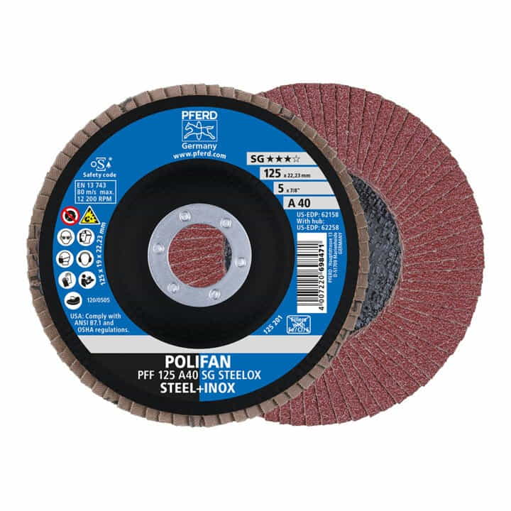 PFERD flap disc POLIFAN A SG STEELOX Ø 125 mm grain size 120 conical ( 4000843246 )