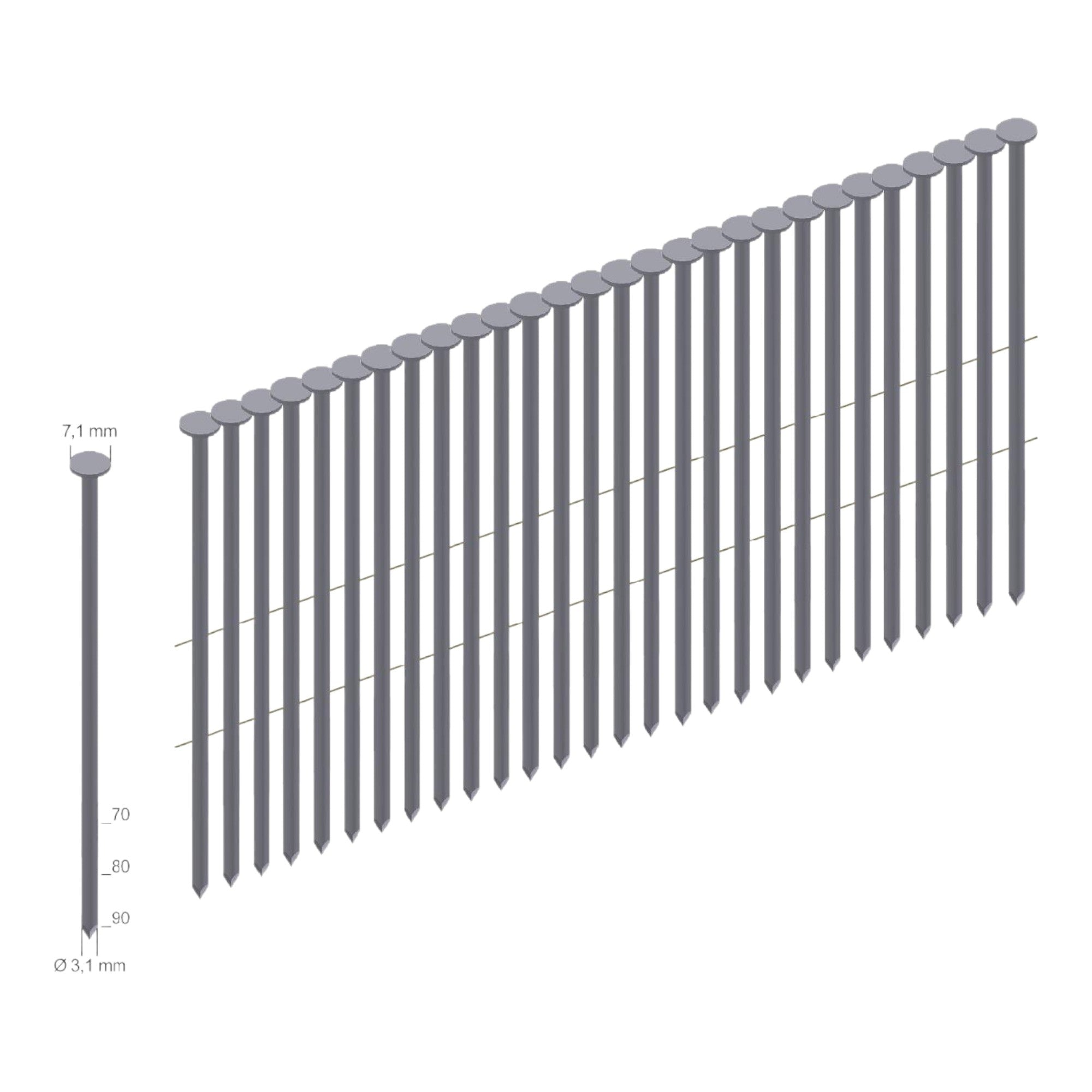 The Prebena CNW31/90NKRI coil nails are the ideal accessory for your nail fastener. With their round head and ring shank, they ensure a secure and stable connection. Made of galvanised steel, they are particularly robust and durable, even in demanding environments. The EN 14592-2012-8 standard guarantees the highest quality and reliable performance of these coil nails. They can withstand even extreme loads and offer an optimum fastening solution for a wide range of applications.