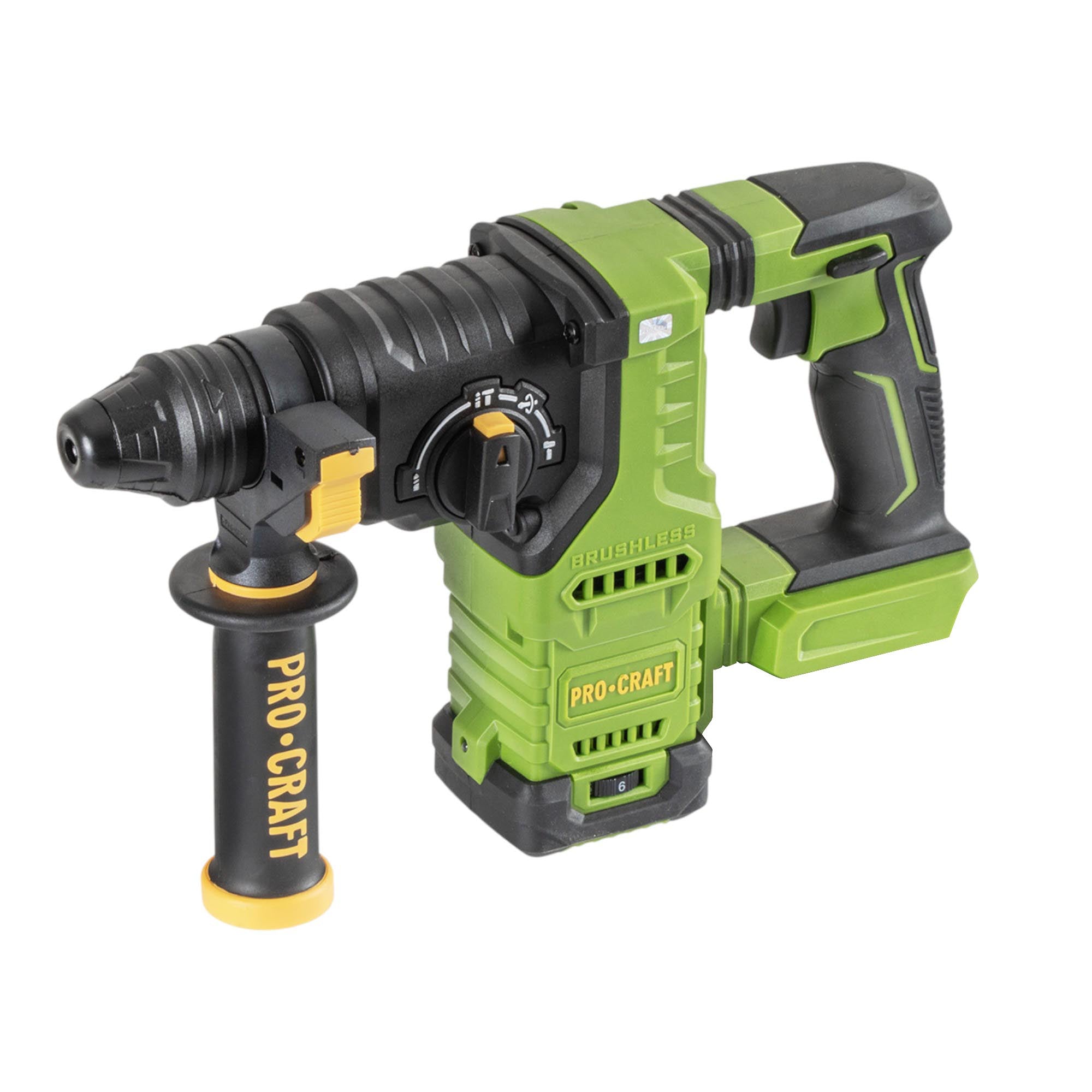 Der Procraft PHA30 Akku Bohrhammer ist ein vielseitiges, leistungsstarkes und handliches Werkzeug, das sowohl für den professionellen als auch für den privaten Einsatz entwickelt wurde und sich ideal für Bohren, Hammerbohren und leichte Abbrucharbeiten eignet. Ausgestattet mit einem bürstenlosen Motor liefert der Bohrhammer höhere Leistung bei gleichzeitig längerer Lebensdauer, geringerem Wartungsaufwand und weniger Erwärmung auch bei längeren Einsätzen, sodass Arbeiten in harten Materialien wie Beton, Mauerwerk oder Naturstein besonders effizient ausgeführt werden können. Dank des SDS Plus-Systems lassen sich Zubehörteile wie Schlagbohrer für Beton, flache oder spitze Meißel, geformte Meißel, spiralförmige Bohrer und Holzmeißel schnell und werkzeuglos wechseln, was maximale Flexibilität bei unterschiedlichsten Projekten ermöglicht. Der Bohrhammer verfügt über drei Arbeitsmodi: Bohren für Holz, Metall oder Kunststoff, Hammerbohren für besonders harte Materialien und Meißeln für Abbruch- oder Materialentfernungsarbeiten. Die integrierte Drehzahlregelung sowie Rechts- und Linkslauf ermöglichen eine präzise Anpassung der Geschwindigkeit an das jeweilige Material und erleichtern das Herausziehen des Bohrers, während die Schlagenergie von 2,8 Joule ausreichend Power liefert, um auch anspruchsvolle Aufgaben effizient zu meistern. Die leichte und ergonomische Bauweise in Kombination mit einem Zusatzhandgriff sorgt für komfortable Handhabung und sicheres Arbeiten über längere Zeiträume, selbst in schwierigen Positionen oder an schwer zugänglichen Stellen. Der PHA30 ist perfekt geeignet für Bauarbeiten wie das Bohren in Beton, Mauerwerk und Naturstein, für Renovierungen wie das Meißeln von Putz oder Entfernen von Fliesen und für eine Vielzahl privater oder professioneller Projekte, bei denen ein leistungsfähiges, präzises und einfach zu handhabendes Werkzeug gefragt ist.