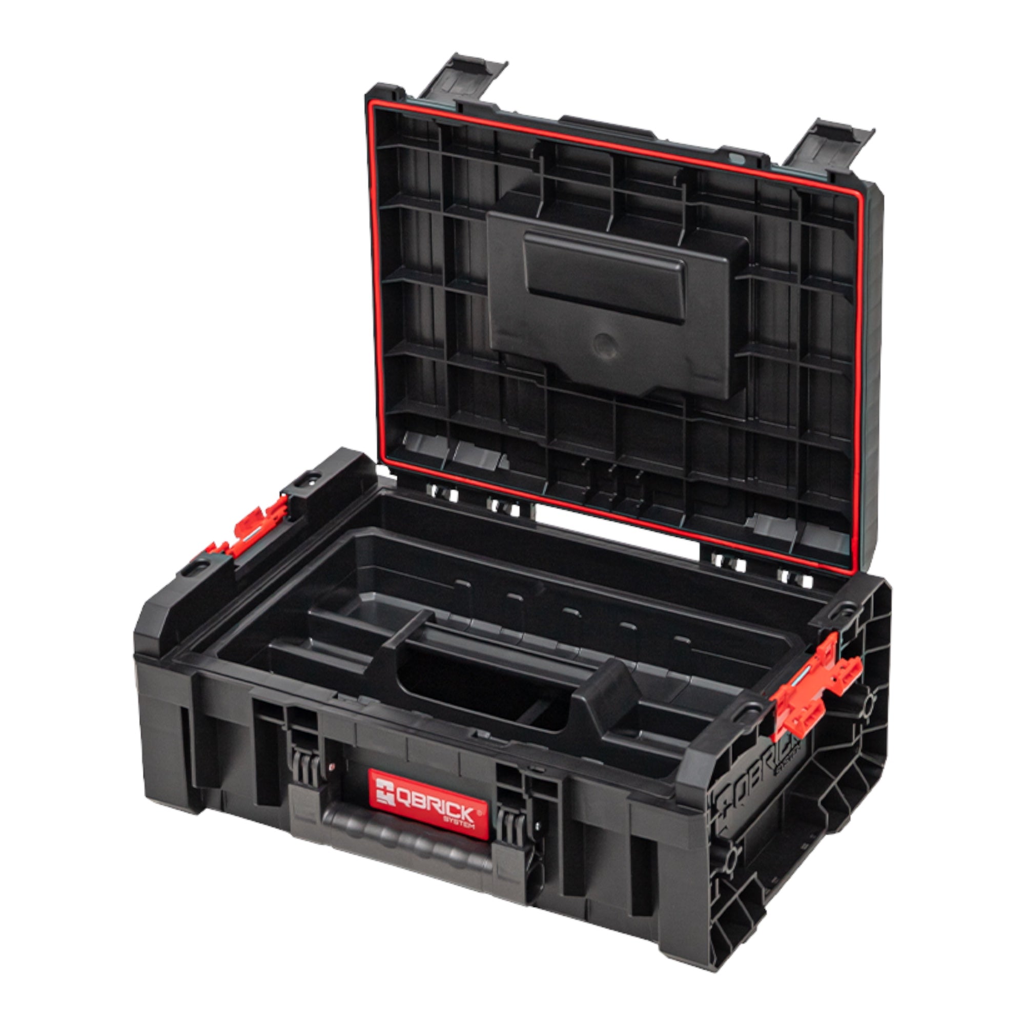 Qbrick System PRO Technician Case - is a medium-sized modular case from the PRO line, which is already equipped as standard with a spacious shelf and a flexible seal integrated into the lid, which ensures its high resistance to dust and water ingress. The size and modular design of the technician case make it the perfect storage and transport case for a wide range of power tools.