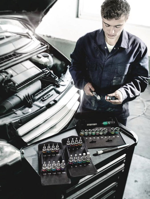12.5 mm (1/2″) square drive - hexagonal with holding function and colour coding system - made of alloyed tool steel - matt chrome-plated