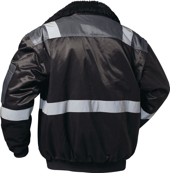 Material exterior: 60% algodón / 40% poliéster, aprox. 250 g/m², forro: 100% poliéster, pelo de fibra: 100% poliéster - bandas reflectantes alrededor del cuerpo, hombros y mangas - cómodo forro de poliéster en el interior, tejido de mezcla de algodón y poliéster resistente a la abrasión en el exterior - repelente al agua gracias a su revestimiento de alta calidad - cuello y mangas desmontables, forro de pelo de fibra desmontable - el revestimiento permite la limpieza y el lavado a máquina a 40 °C