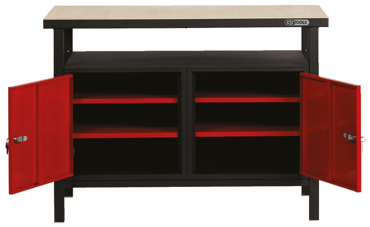 Banco de trabajo puerta/puerta + 2 repisas, 840x1200x600mm - Banco de trabajo PROFI con 2 puertas