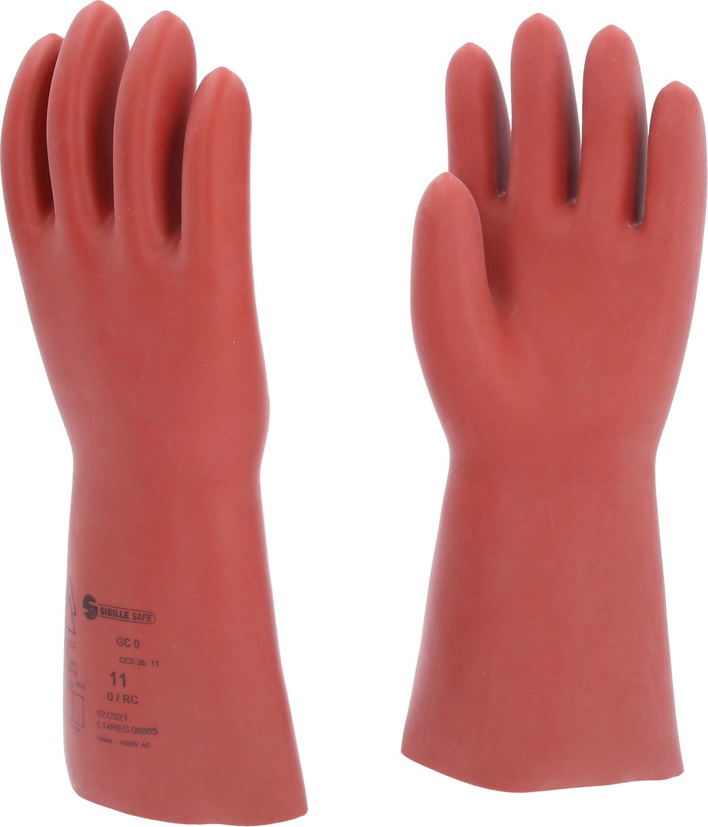 Guante protector de electricista con protección mecánica, talla 11, clase 0, rojo - Guante protector de electricista con aislamiento protector de látex natural y protección mecánica