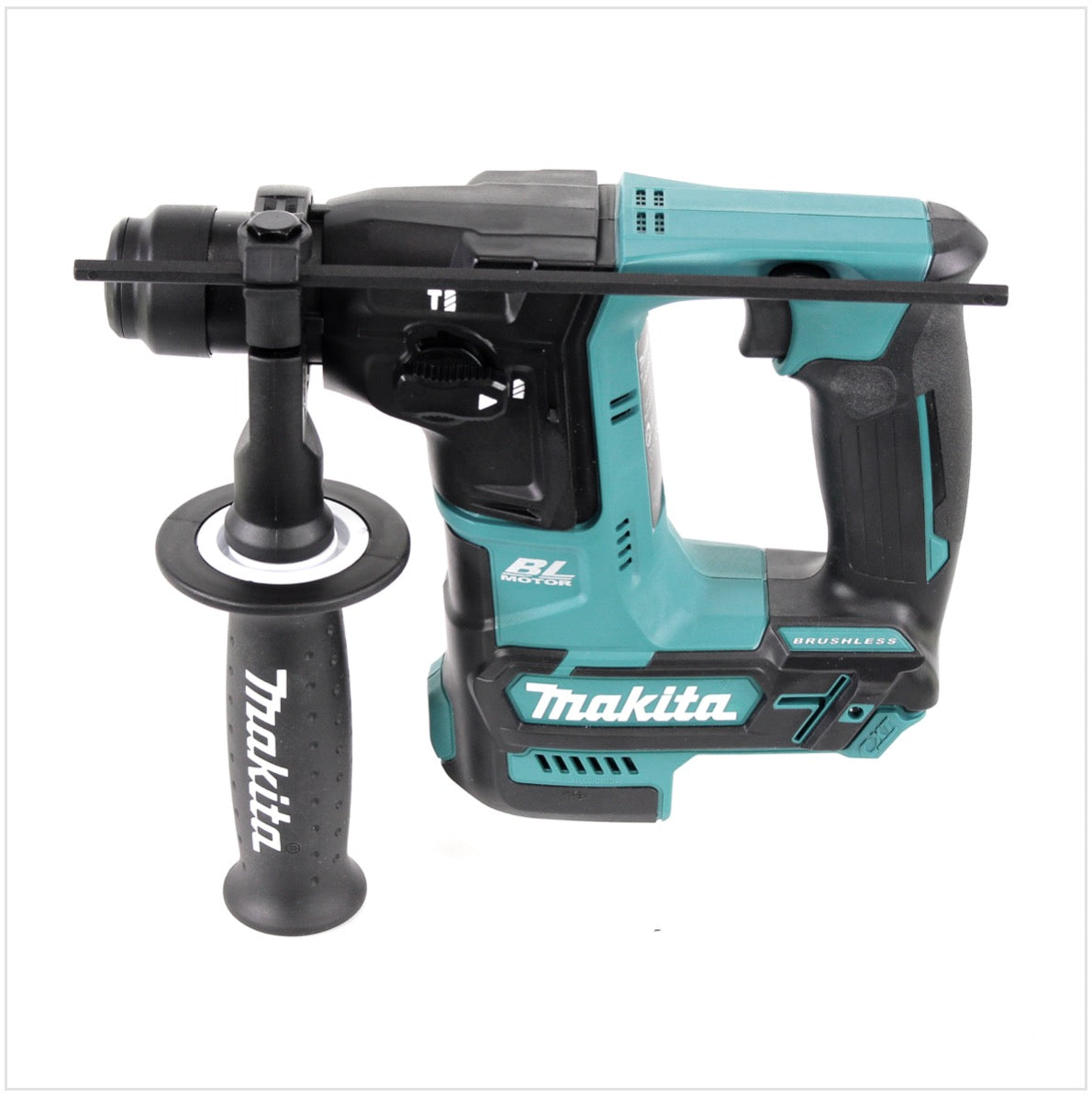 El martillo perforador inalámbrico HR 166 D de 10,8 voltios de Makita impresiona por su alto rendimiento de 1,10 julios de energía de impacto a pesar de su diseño compacto y ligero. El motor sin escobillas garantiza un funcionamiento prácticamente sin desgaste y, por tanto, una larga vida útil de la herramienta. El martillo perforador se puede ajustar en 2 etapas mediante un interruptor giratorio mecánico, lo que permite cambiar de forma rápida y sencilla entre perforación sin percusión y perforación con percusión. El soporte SDS-Plus de 16 mm / 5/8" facilita el cambio de accesorios sin herramientas y permite utilizar la herramienta de forma individual, al igual que el control de velocidad de ajuste fino. El martillo perforador también está equipado con un freno electrónico y un sistema electrónico de velocidad constante, así como con rotación hacia delante y hacia atrás del cabezal de perforación, lo que hace que la máquina sea ideal para cualquier aplicación en la obra y para los aficionados al bricolaje.