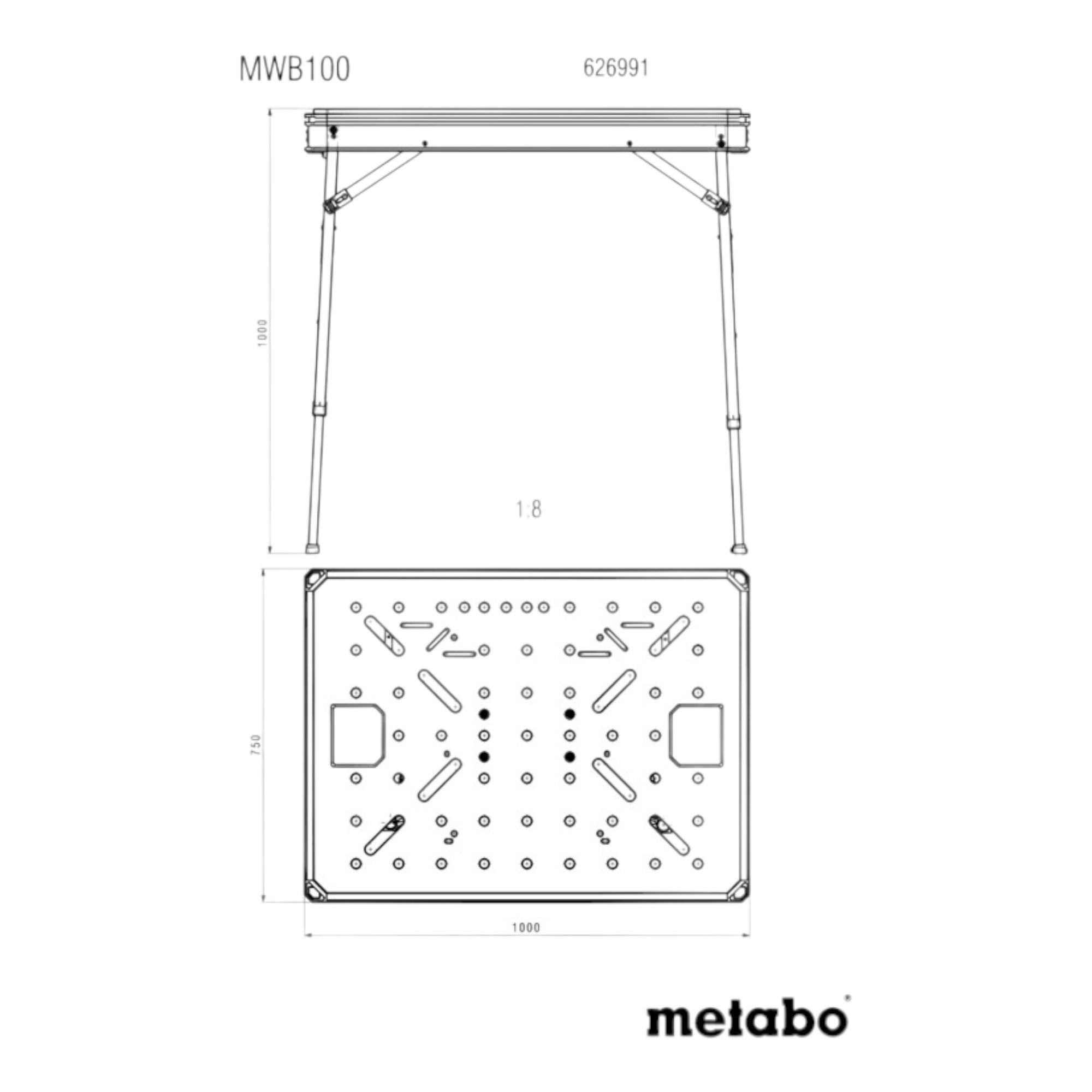 Mesa multifunción Metabo MWB 100 ( 626991000 ) banco de trabajo móvil robusto tablero MDF