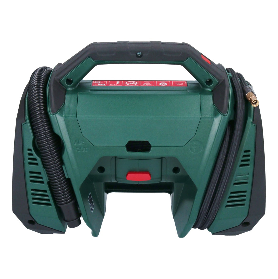 El Metabo AK 18 Multi es un compresor multifuncional sin cable que se puede utilizar de múltiples maneras para inflar neumáticos, balones, colchones de aire y mucho más. Con su función de alta presión, permite inflar cómodamente neumáticos de automóviles y bicicletas. La función de volumen del compresor también permite inflar y desinflar rápidamente productos hinchables como camas para huéspedes, colchones de aire y accesorios para piscinas. Una gran pantalla de alto contraste muestra la función seleccionada, la presión actual y la presión objetivo ajustada. La presión puede visualizarse en las unidades bar, psi y kPa. En cuanto se alcanza la presión objetivo ajustada, el compresor se desconecta automáticamente. Para su uso en la oscuridad o con poca visibilidad, el AK 18 Multi dispone de una luz LED brillante que ilumina la zona de uso. El compresor puede funcionar con baterías de 18 V o, alternativamente, con un cable de 12 V para vehículos. Otra ventaja del AK 18 Multi es que puede combinarse con todos los paquetes de baterías de 18 V y cargadores de las marcas CAS.