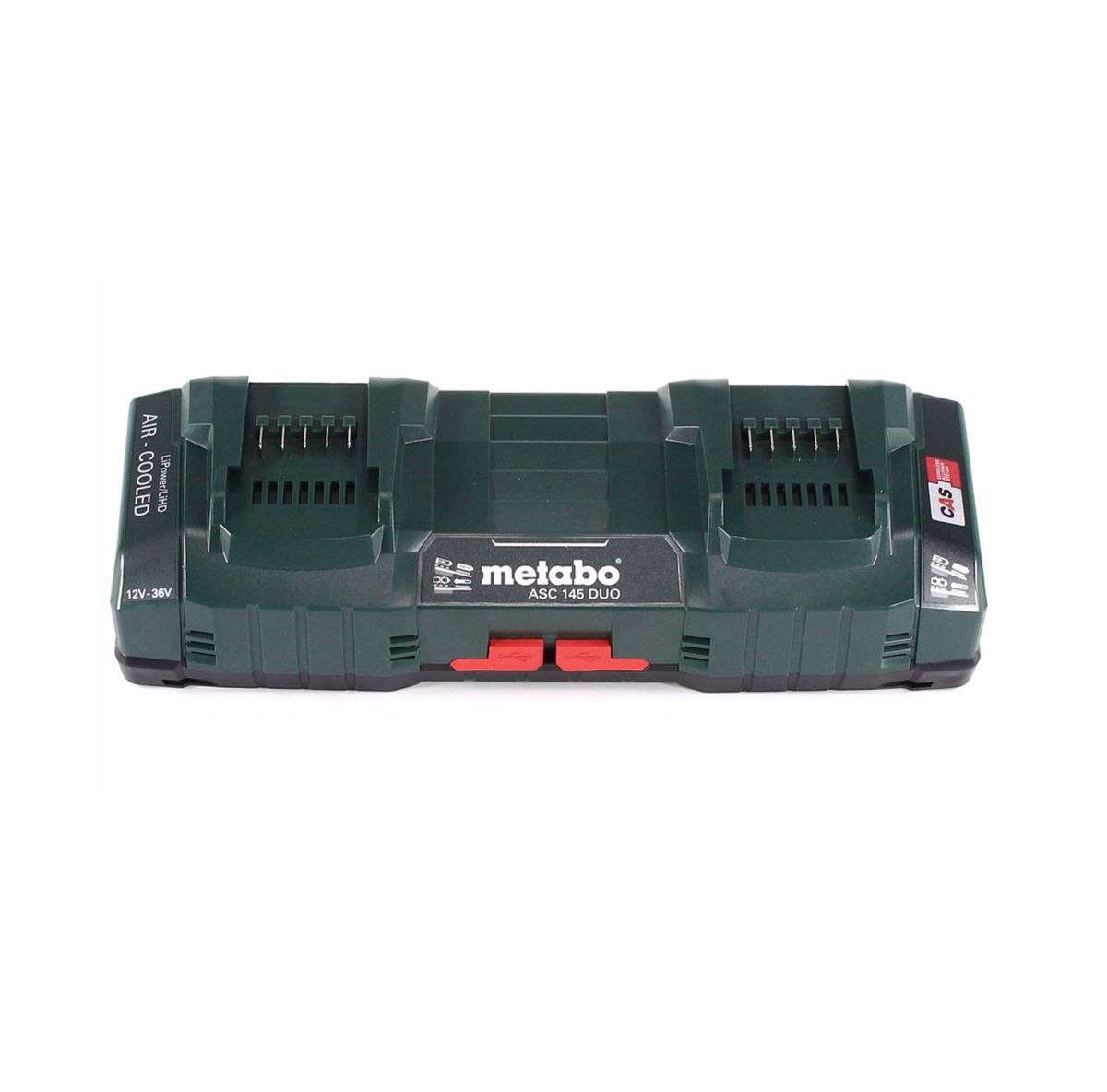 La batería convence por su carga altamente eficiente y cuidadosa, su óptimo aprovechamiento de la energía y su extremadamente larga vida útil. La tecnología Metabo Ultra-M garantiza una coordinación óptima y una comunicación perfecta entre el motor de la máquina, la batería y el cargador. Un sistema de monitoreo multifuncional registra continuamente tanto la temperatura de la batería como la intensidad actual, y el monitoreo electrónico de celda individual (ESCP) también garantiza una larga vida útil de la batería. Gracias a la tecnología de carga patentada "AIR COOLED", la batería del cargador se enfría con aire, para tiempos de carga más cortos y una vida útil más larga. La indicación de capacidad permite controlar permanentemente el estado de llenado. La batería se puede almacenar durante mucho tiempo casi sin autodescarga. Una ventaja importante para los usuarios es la compatibilidad ilimitada. Desde 2009, las baterías de cada generación son compatibles con todas las máquinas de batería de Metabo de la clase de voltaje correspondiente y cada cargador de Metabo carga todas las baterías del tamaño correspondiente. Con las baterías de Metabo estará seguro en el futuro. El cargador rápido doble es adecuado para cargar todas las baterías de Li-Ion y LiHD para asientos deslizantes (12V-36V) con una corriente de carga de batería adaptada de Metabo. La tecnología de carga patentada AIR COOLED garantiza una buena refrigeración de la batería durante la carga, lo que permite reducir considerablemente los tiempos de carga. El ASC 145 DUO convence por su bajísima potencia de grabación en modo de espera. La gestión de carga inteligente controlada por el procesador garantiza una carga suave y un número máximo de ciclos de carga. La ventaja especial de este cargador es su idoneidad para cargar todos los paquetes de baterías de los socios CAS (Cordless Alliance System): Rothenberger, Edding, Fischer, Mafell, Collomix, Eibenstock, Eisenblattt, Haaga, Starmix, Steine, Rokamat, Birchmeier. Un cargador para todo.