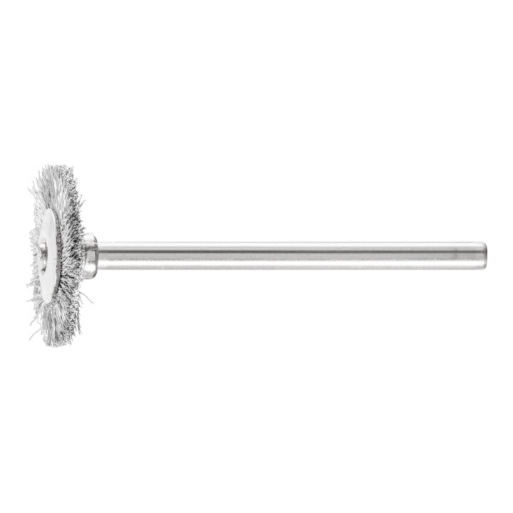 adecuado para trabajos de cepillado ligeros como desbarbar, limpiar y pulir - trabajo preciso posible en zonas de difícil acceso - cepillos de latón también adecuados para trabajar en metales no férricos blandos - vástago Ø 3 mm