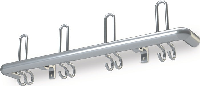 Perchero aluminio Ø 40 mm - con tapas curvadas - con ganchos triples de aluminio, distancia entre ganchos aprox. 200 mm - gancho Ø 10 mm - marca GS de LGA Nuremberg