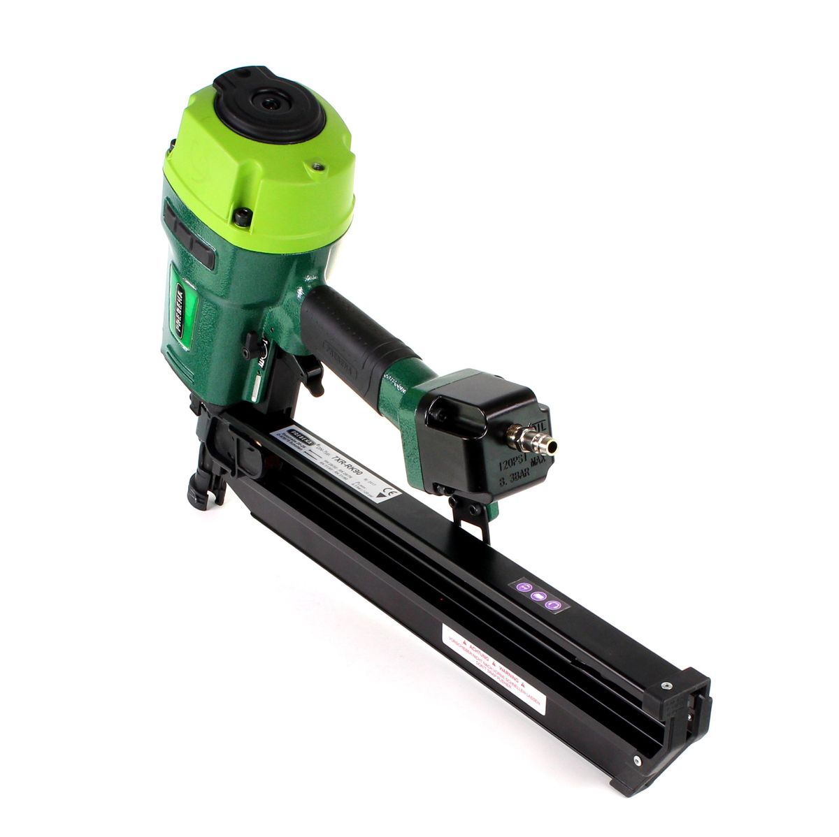 La clavadora neumática Prebena 7XR-RK90 es ideal para el bricolaje y las manualidades. Incluye un dispositivo de seguridad de liberación, un cargador de carga trasera, un silenciador sin retroceso, protección contra disparos vacíos, protección contra impresiones y una liberación simple y de contacto. Se utiliza con frecuencia para listones de tejado, construcción de armazones, subestructuras, construcción de casas prefabricadas, cerchas de madera, cajas, palés, construcción de armazones de madera, construcción de vallas, cobertizos de jardín y mucho más. Se utiliza con clavos en tiras de cabeza redonda del tipo RK de 50 - 90 mm con un tamaño de alambre de 2,8 - 3,1 mm. Su consumo de aire es de 2,0 litros/clavo y su presión de trabajo oscila entre 4-7 bar.