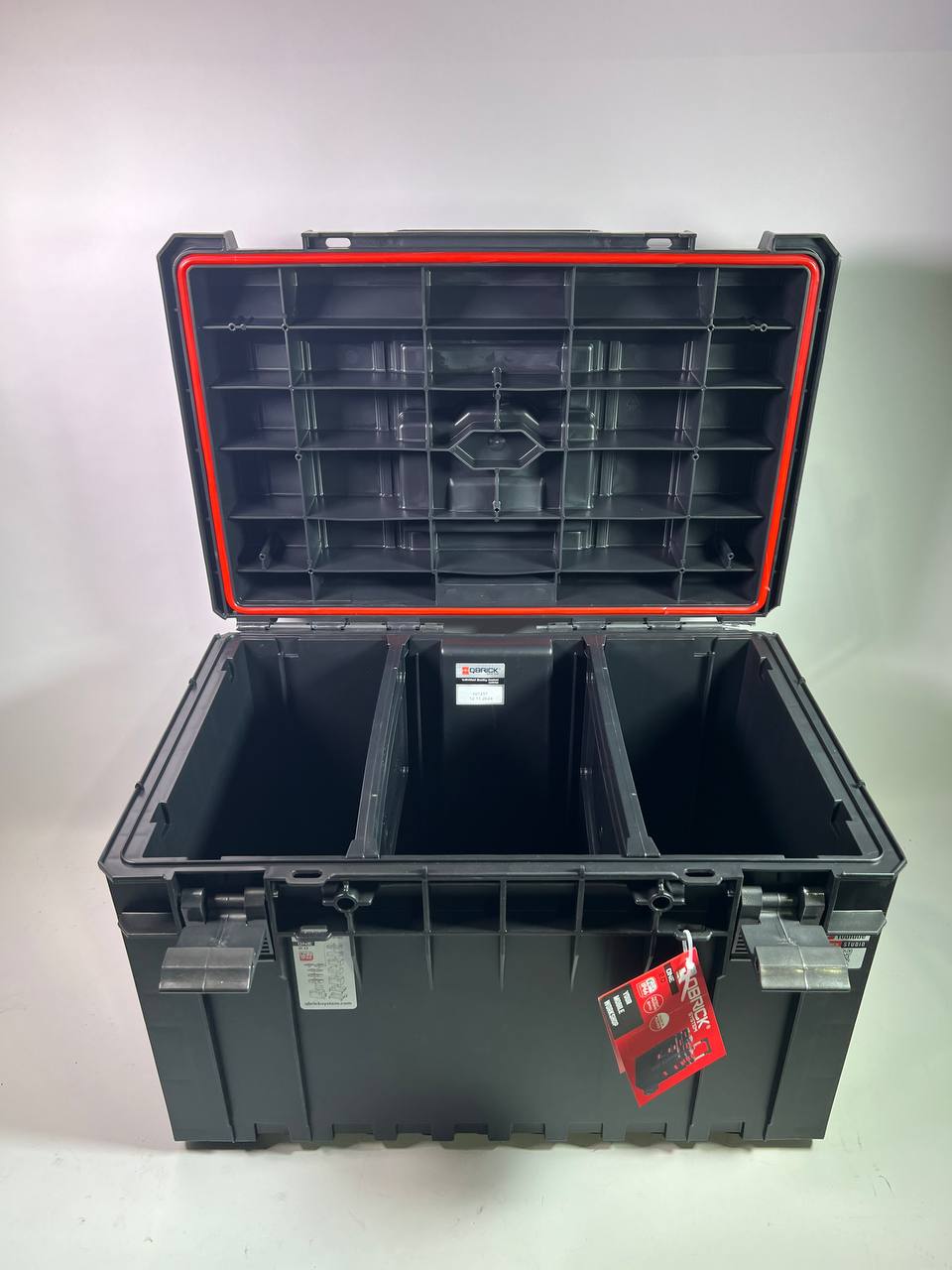 Con una impresionante capacidad de 52 litros, el maletín de herramientas Qbrick System ONE 450 2.0 Basic ofrece espacio suficiente para herramientas eléctricas y manuales de gran tamaño. En el interior, dos compartimentos ajustables garantizan una organización y claridad óptimas. Gracias a la junta flexible, el maletín está totalmente protegido contra la entrada de polvo y agua según la norma IP66, por lo que resulta ideal para su uso en entornos de trabajo exigentes. La tapa Basic dispone de una ranura de corte funcional y personalizada que ofrece opciones de aplicación adicionales. La estructura reforzada de la tapa y el cuerpo garantiza una elevada capacidad de carga de hasta 50 kg y puede soportar una presión de 120 kg, por lo que la maleta también puede utilizarse como robusta plataforma de trabajo. La versión 2.0 de la línea de productos ONE se caracteriza por su diseño aún más estable y ofrece opciones de ampliación flexibles gracias a la adaptación a insertos roscados M8 para satisfacer las necesidades individuales del usuario.