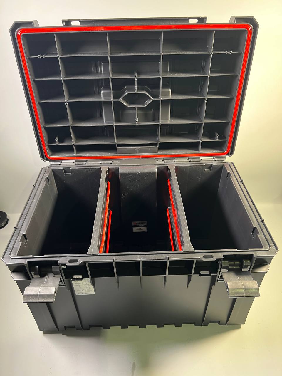 Con una impresionante capacidad de 52 litros, el maletín de herramientas Qbrick System ONE 450 2.0 Basic ofrece espacio suficiente para herramientas eléctricas y manuales de gran tamaño. En el interior, dos compartimentos ajustables garantizan una organización y claridad óptimas. Gracias a la junta flexible, el maletín está totalmente protegido contra la entrada de polvo y agua según la norma IP66, por lo que resulta ideal para su uso en entornos de trabajo exigentes. La tapa Basic dispone de una ranura de corte funcional y personalizada que ofrece opciones de aplicación adicionales. La estructura reforzada de la tapa y el cuerpo garantiza una elevada capacidad de carga de hasta 50 kg y puede soportar una presión de 120 kg, por lo que la maleta también puede utilizarse como robusta plataforma de trabajo. La versión 2.0 de la línea de productos ONE se caracteriza por su diseño aún más estable y ofrece opciones de ampliación flexibles gracias a la adaptación a insertos roscados M8 para satisfacer las necesidades individuales del usuario.