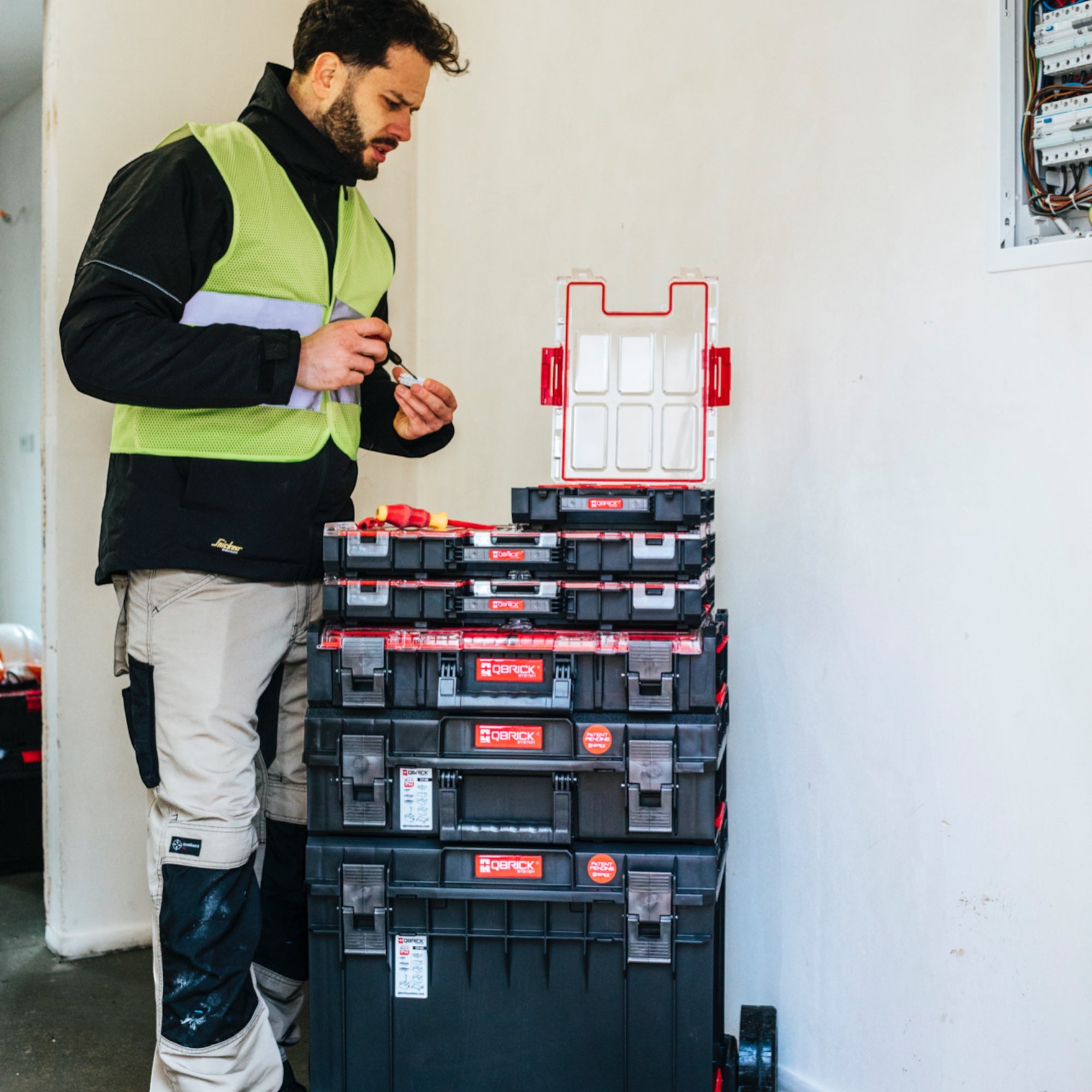 Qbrick System ONE Organizer M Plus es un modelo superior del M-Organizer de la gama modular ONE-Organizer, que pueden combinarse entre sí en numerosas configuraciones. El Organizador M Plus incorpora el sistema patentado Easy Access System, que, gracias a unos elementos de conexión especiales, permite acceder fácilmente a cada módulo sin tener que desmontarlo, lo que aumenta considerablemente la ergonomía de trabajo. La versión MFI de este organizador incluye 3 inserciones dobles de espuma que, tras realizar los orificios correspondientes, protegen perfectamente las herramientas manuales y eléctricas colocadas en su interior. Además, la junta integrada en la cubierta de policarbonato resistente a los golpes proporciona una protección total contra la entrada de agua y polvo.