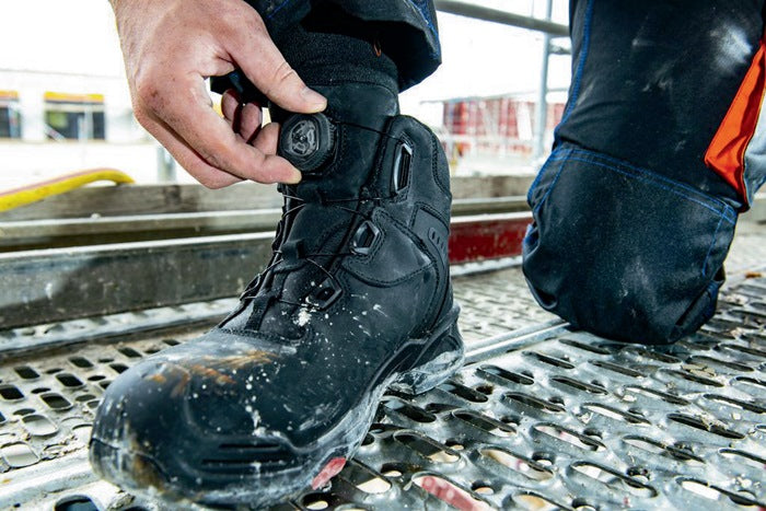 selon la norme DIN EN ISO 20345 - S3 SRC HRO - cuir pleine fleur, robuste, cuir de vachette LWG respirant - système de fermeture BOA® pour une ouverture et une fermeture faciles avec un réglage optimal du chaussant - système Heel-Safety - embout flexible en acier Baak® - élément de couplage en H intégré pour une flexion adaptée au pied - semelle intermédiaire antiperforation non métallique flexible - système Baak® go&relax - semelle intérieure Baak® ESD Softstep+ - résiste brièvement à une température de 300°C - antidérapante, résistant à de nombreux acides et bases, résistant aux coupures - selon DGUV 112-191 - largeur 11 sur demande également à partir de la taille. 38 et jusqu'à la taille 48