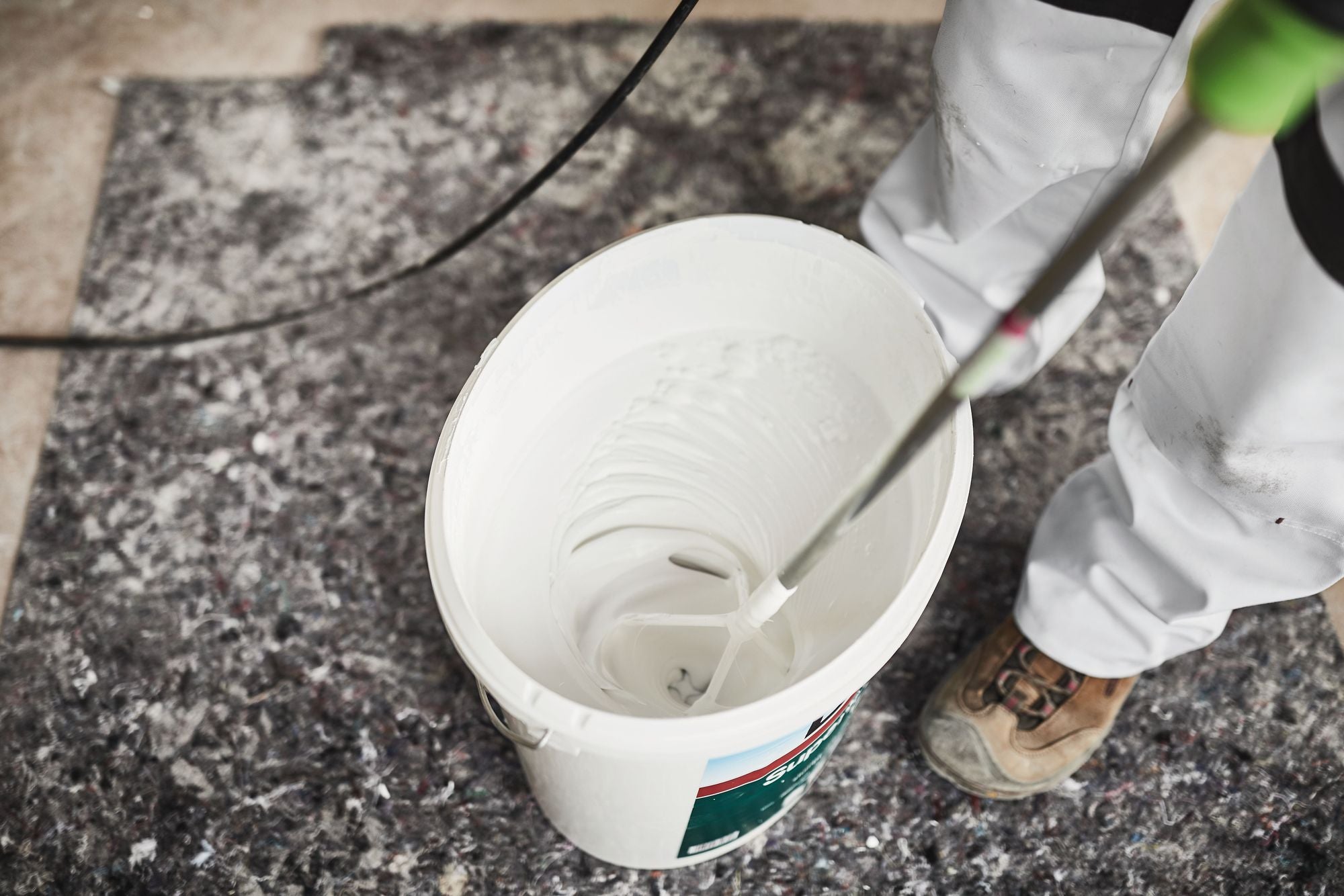 Fouet pour mélanger sans bulles et sans inclusions d'air, par exemple pour niveler. Panier d'agitation avec forces de cisaillement élevées.