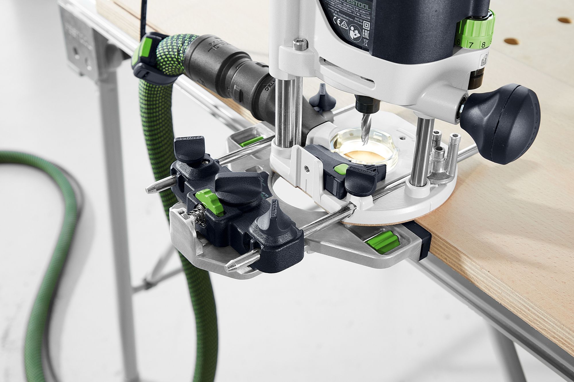 La fraiseuse Festool OF 1010 offre de nombreuses possibilités d'utilisation pour les travaux de fraisage. En raison de sa construction compacte et légère, d'un double serrage de la colonne et d'une vue dégagée sur la zone de fraisage, cette fraiseuse supérieure offre une utilisation agréable pour différents domaines d'application. Le rrglage au 1/10 mm de la fraise permet un travail prrcis et de grande qualit. Le système électronique MMC assure un travail adapté au matériau et surveille la température pour éviter toute surchauffe, ce qui permet de réduire la vitesse de rotation et de refroidir la machine. La zone de travail facile d'accès, le frein rapide et la protection contre le redémarrage permettent en outre de travailler confortablement et en toute sécurité. En outre, cette fraiseuse supérieure, associée à l'aspirateur Festool, offre un environnement de travail propre et une vue agréable sur la zone de travail. Festool est un fabricant d'outils électriques haut de gamme qui se distingue avant tout par sa longue tradition et sa très grande qualité de fabrication.