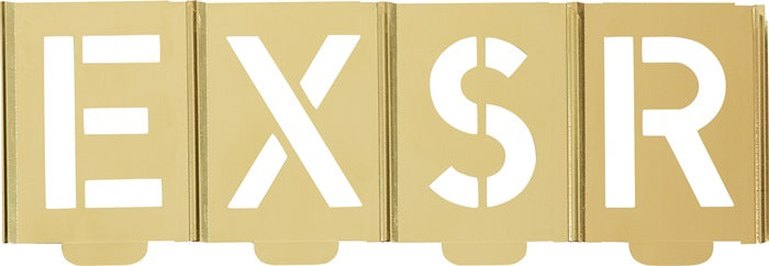 en tôle spéciale · caractères d'imprimerie · lettres majuscules A - Z Avantages particuliers : assemblage facile de plusieurs caractères grâce au système d'emboîtement intégré · possible jusqu'à une hauteur d'écriture de 100 mm, courbé vers le bas pour pouvoir retirer facilement les gabarits sans maculer la peinture