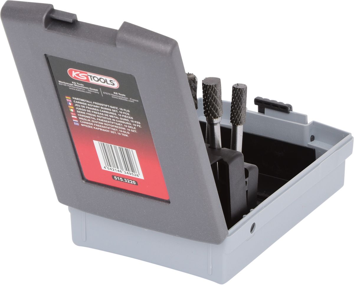 KS TOOLS Jeu de fraises HM, coffret PVC, 10 pcs ( 515.3220 )