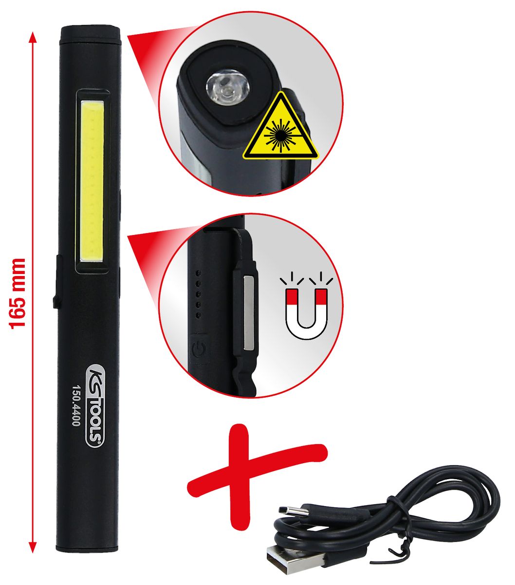KS TOOLS Lampe d’inspection à bande LED COB de 350 lumens avec spot UV à LED et pointeur laser ( 150.4400 )