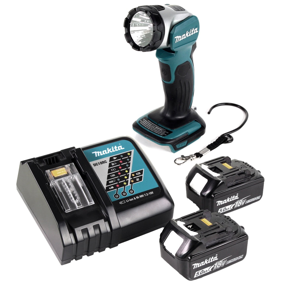 Makita DML 802 RT Lampe de chantier sans fil 18 V Li-Ion + 2x Batteries 5,0 Ah + Chargeur