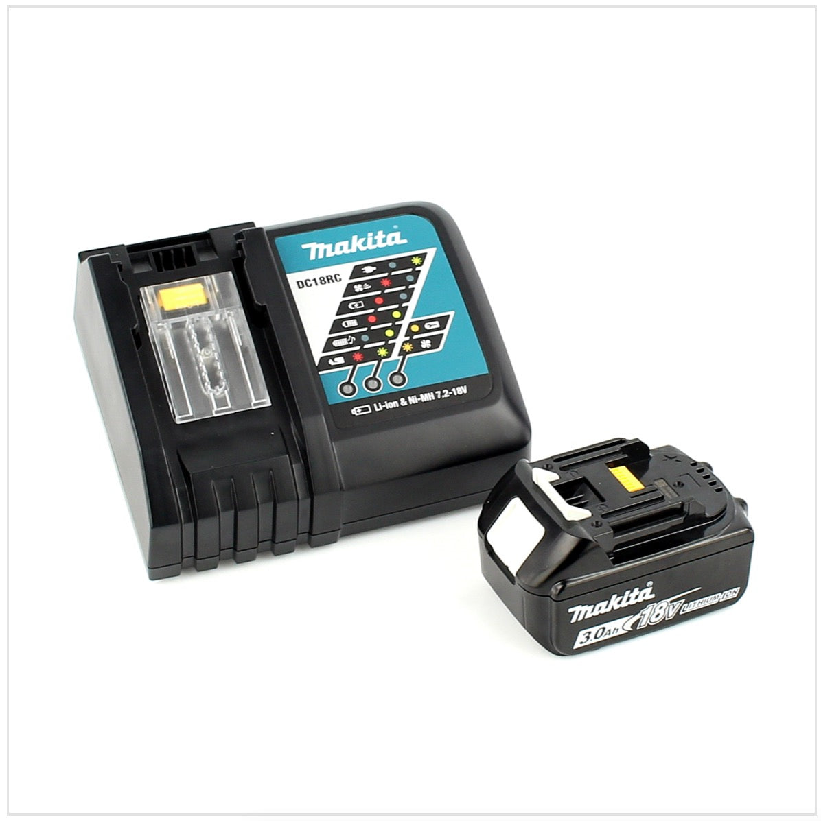 Makita DRT 50 RF1J 18 V Li-Ion Affleureuse plaque de plâtre sans fil Brushless avec boîtier Makpac + 1x Batterie BL 1830 3,0 Ah + Chargeur DC18RC